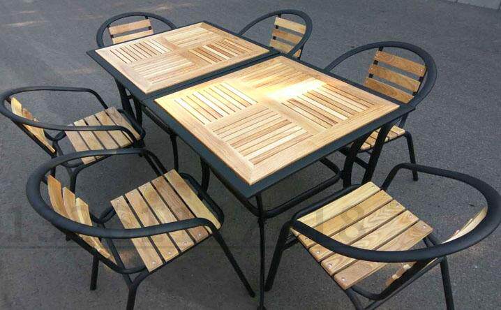 На открытом воздушном столе с железным столом кресло с твердым деревом ресторан анти -коррозион