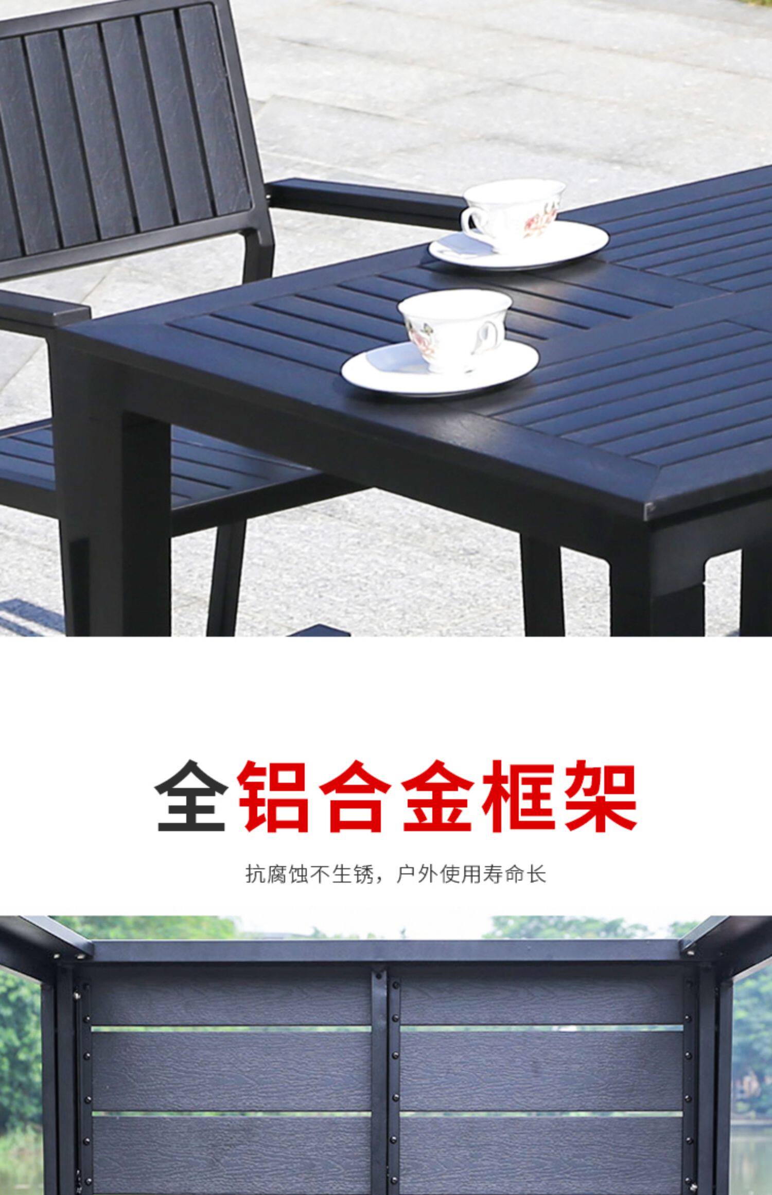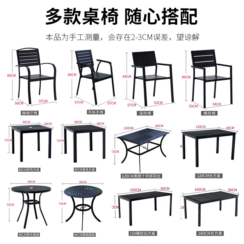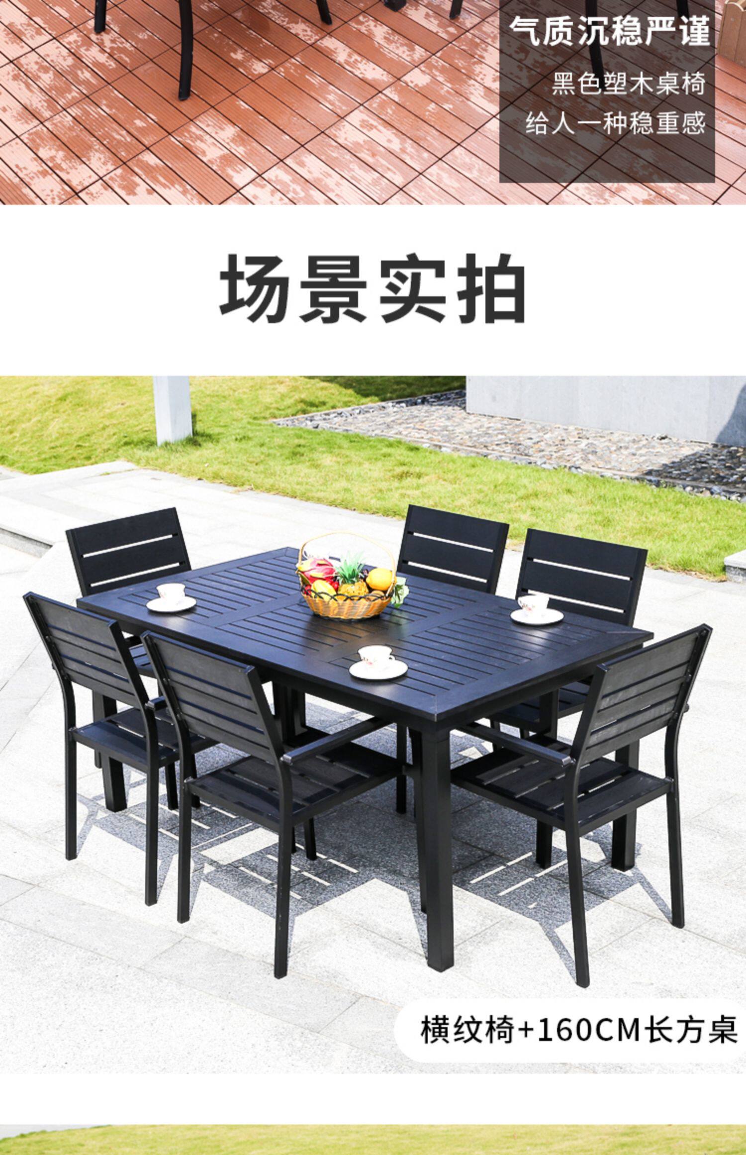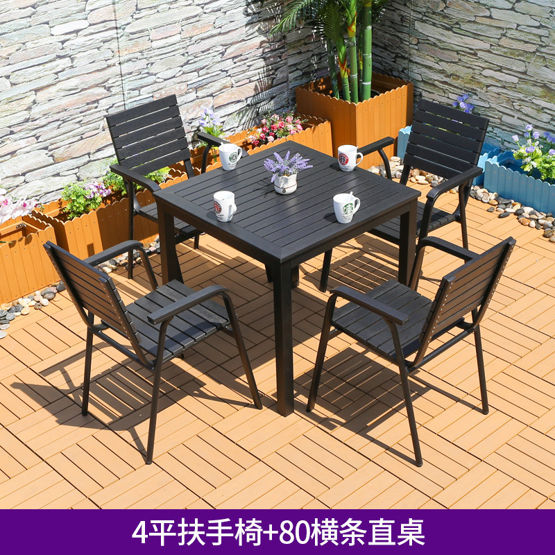 Столы на открытом воздухе и стулья Пластиковые деревянные столы и кресло против коррозионного деревянного кафе столы внутреннего двора и стул Комбинированные садовые виллы с открытыми водонепроницаемыми внешним видом.
