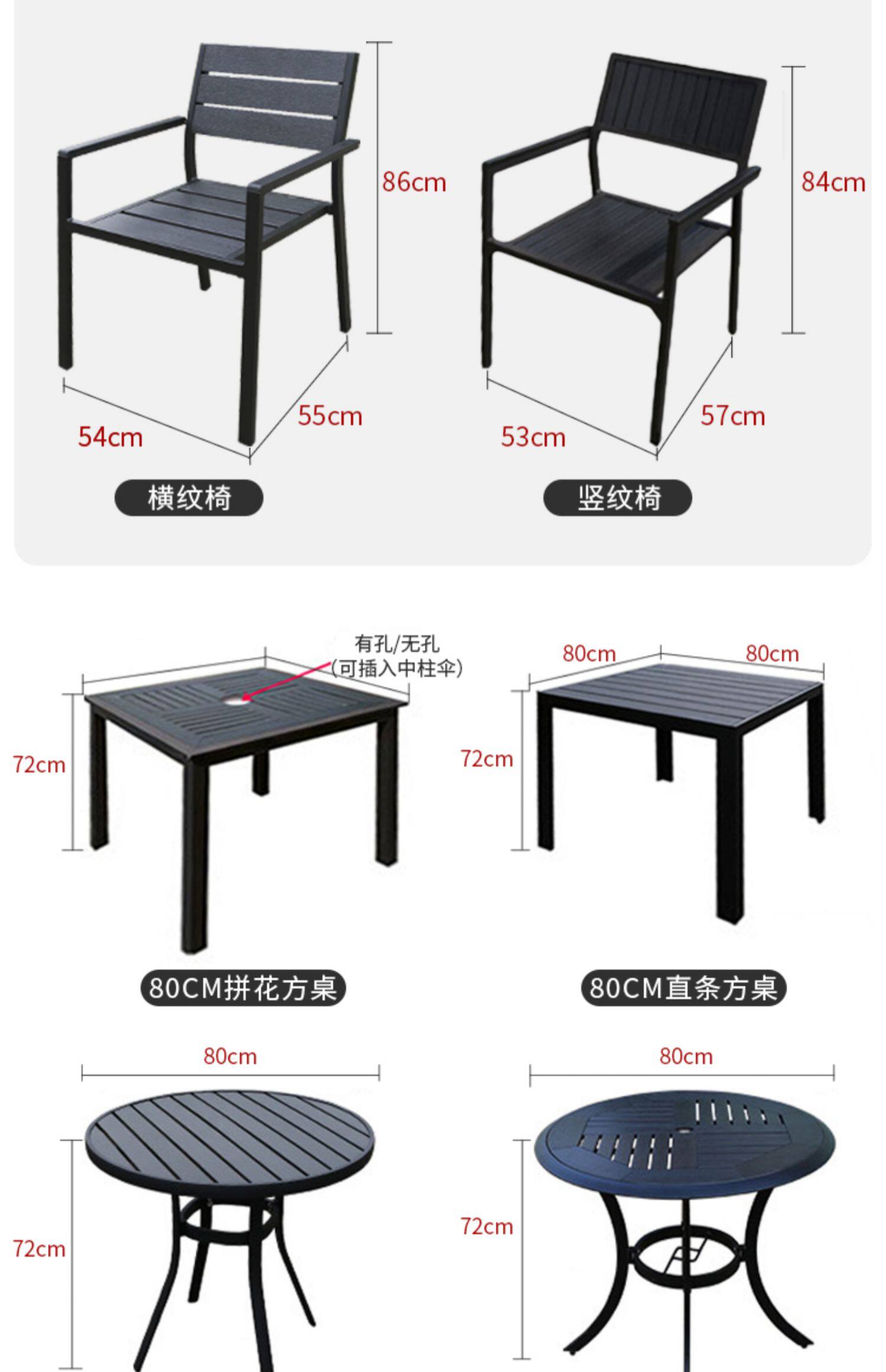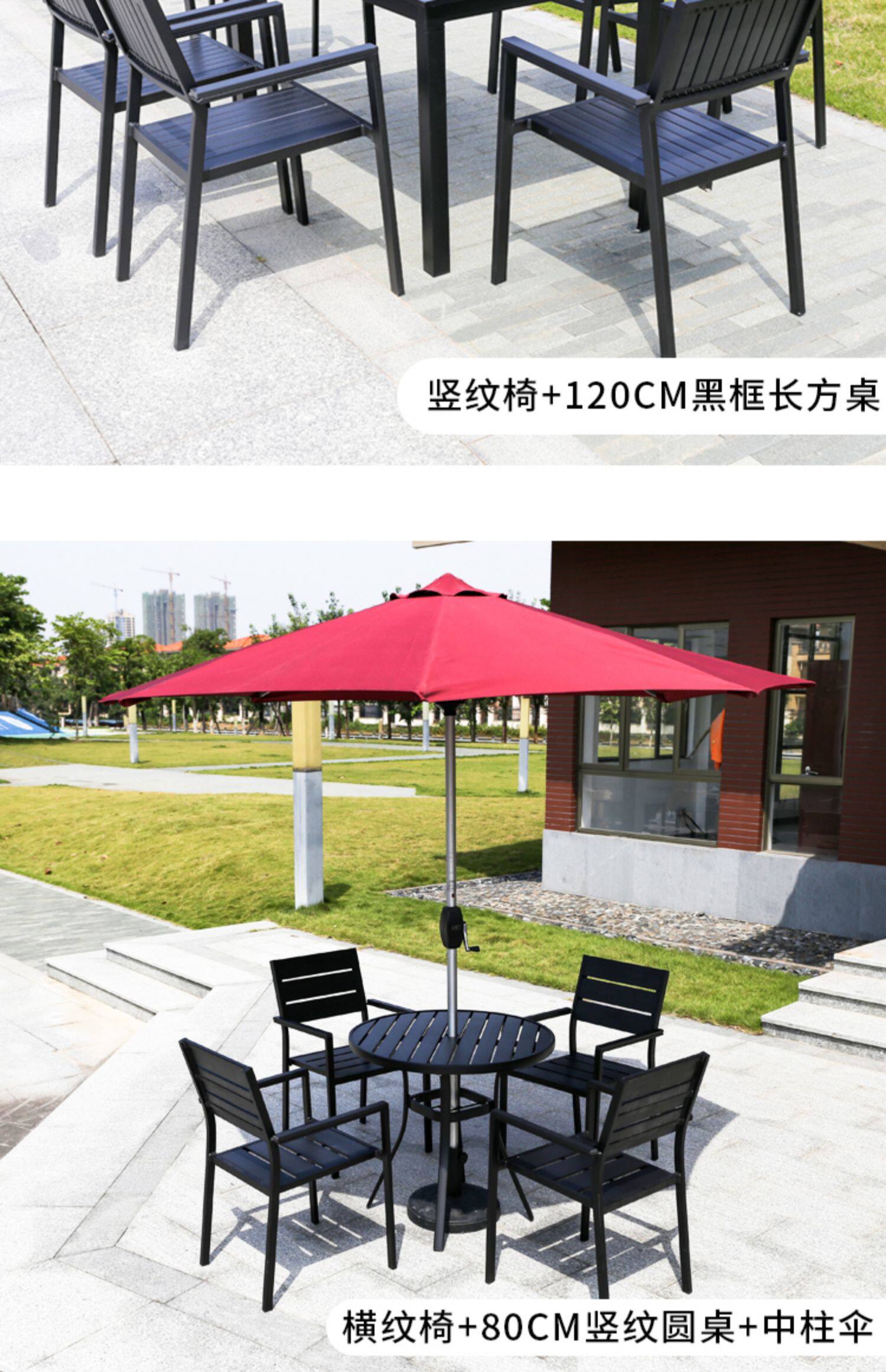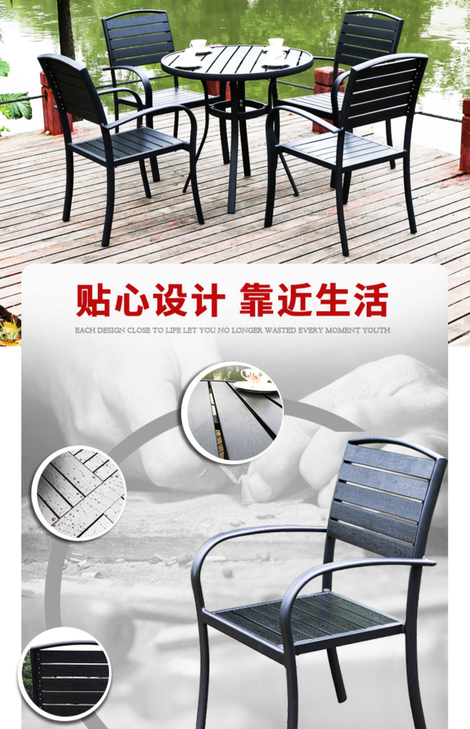 Столы на открытом воздухе и стулья Пластиковые деревянные столы и кресло против коррозионного деревянного кафе столы внутреннего двора и стул Комбинированные садовые виллы с открытыми водонепроницаемыми внешним видом.
