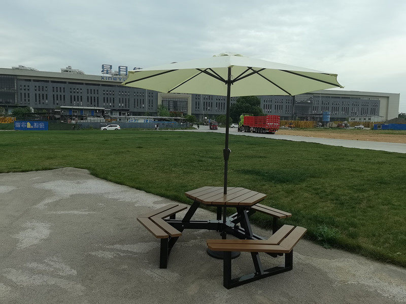 Столы на открытом воздухе и стулья.