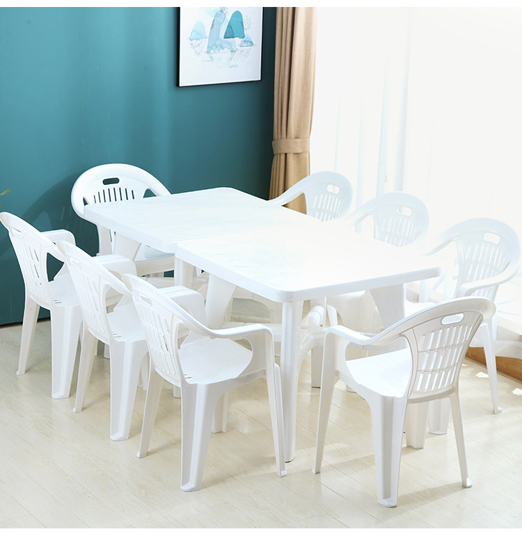 Пластиковые пляжи с густыми туалетными домами, холодные столы и стулья наборы домашней еды, столовая, офисная стойка стойла.