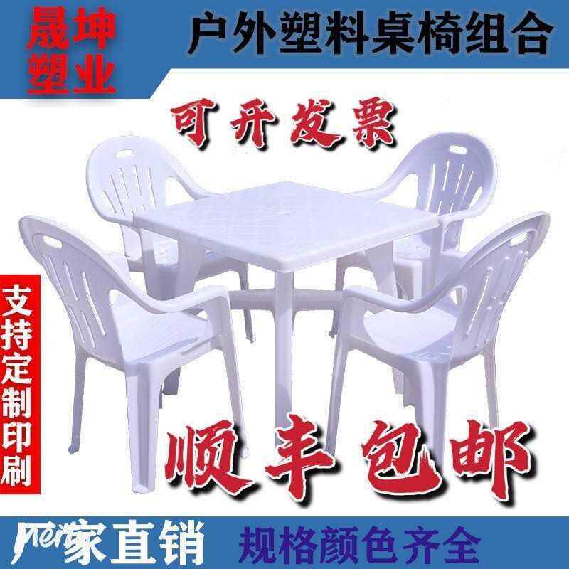 Открытые пластиковые киоски, пивные столы на ночном рынке и сочетание стула Взрослые с подлокотниками, пляж