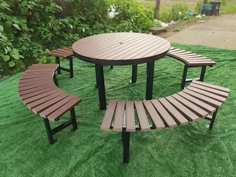 Наружный стол и стул. Железное железо с твердым деревом Круглый стол Антикоррозионный деревянный парк Стол Пластиковый дерево простые дворы коммерческий уличный столик для барбекю