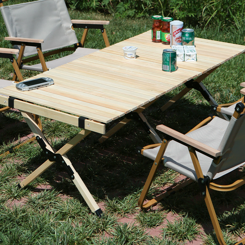 Стол с твердым деревом яиц -рулон открытый портативный складной стол, кемпинг дикий лагерь дикий пикник складной стол складной стол