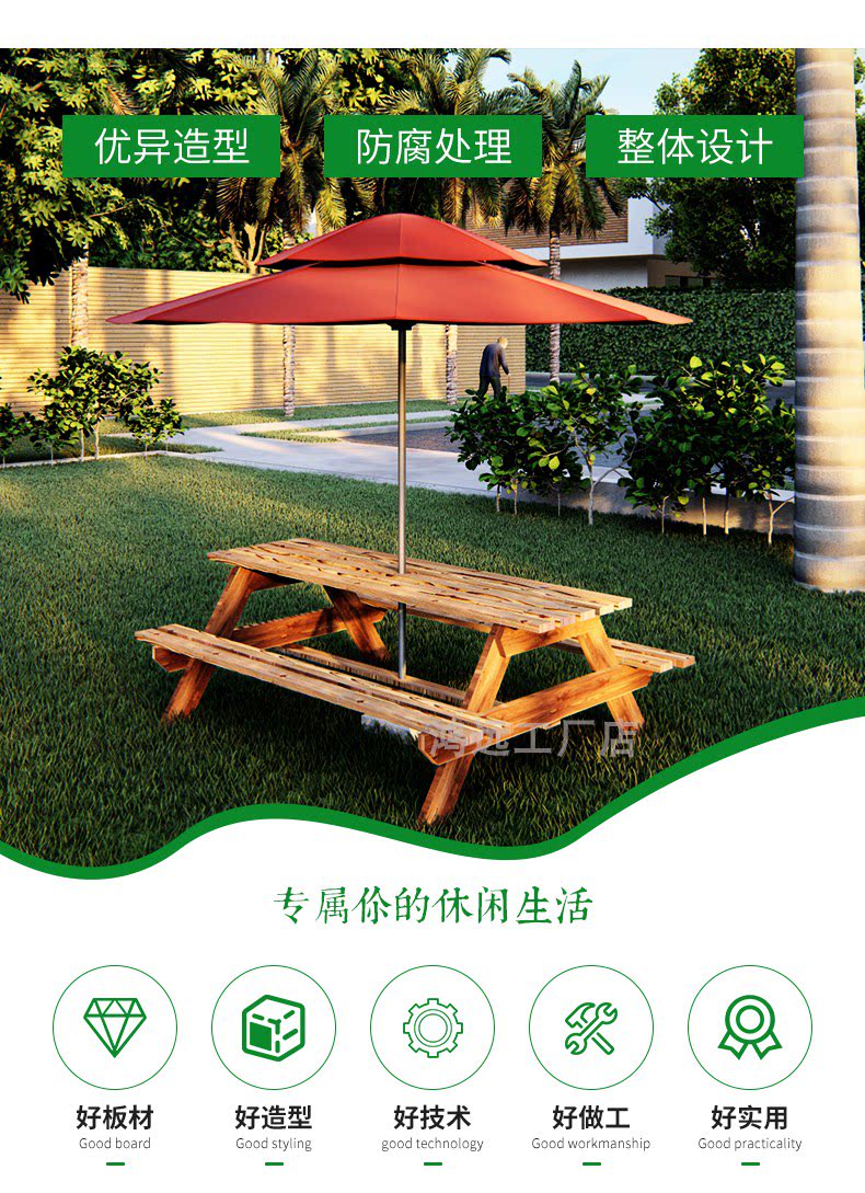 Антикоррозивные деревянные столы и киоски для стул, барбекю с зонтиком настоящие деревянные стулья, расширенные дома в семье. Случайные комбинированные столы и стулья