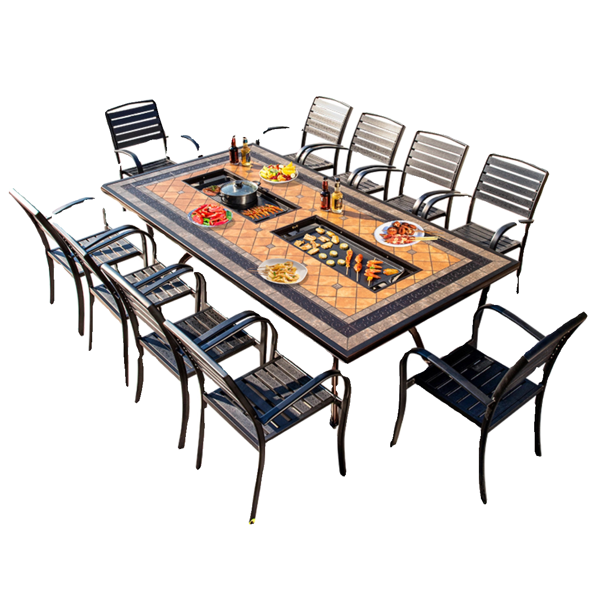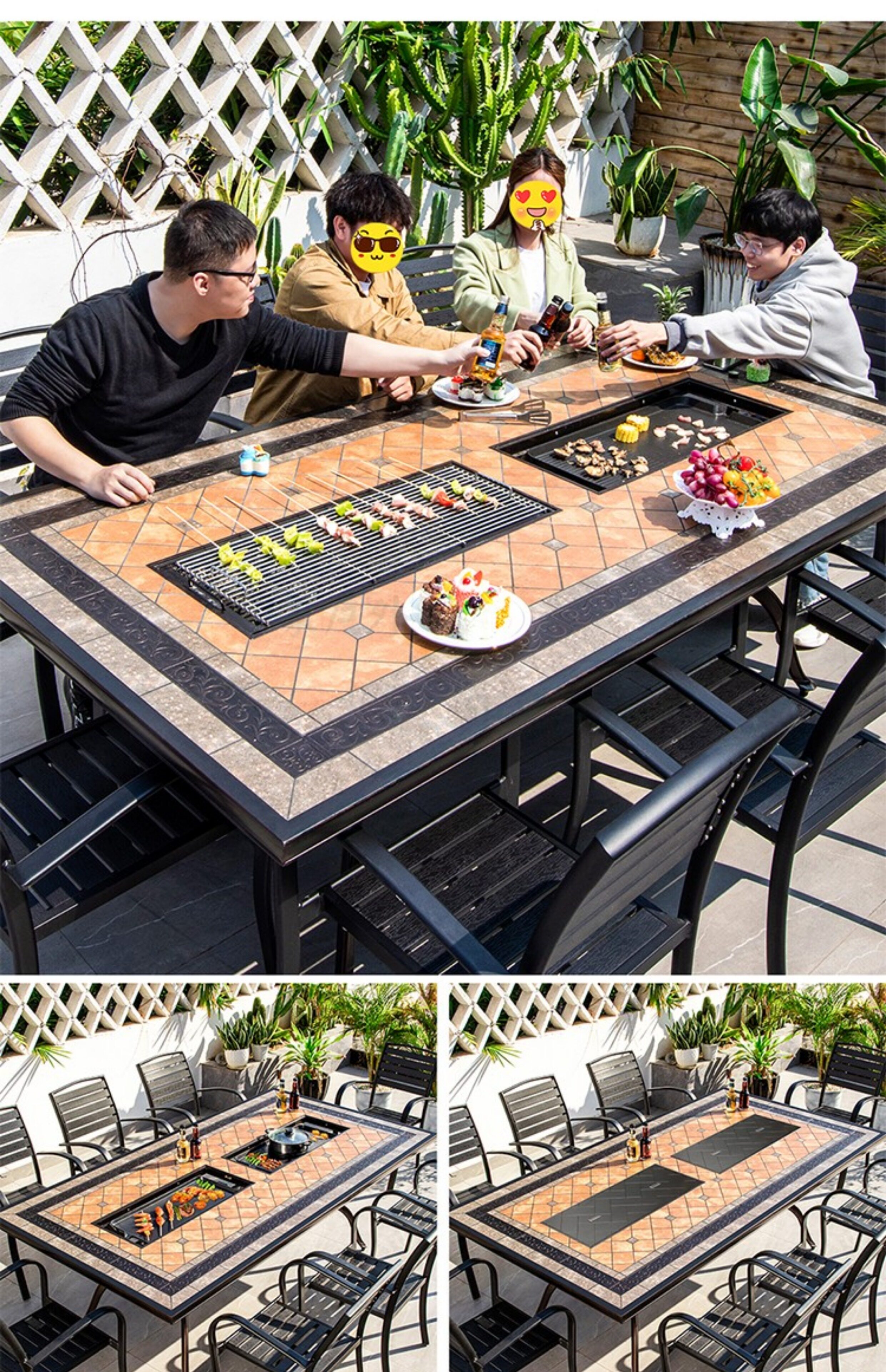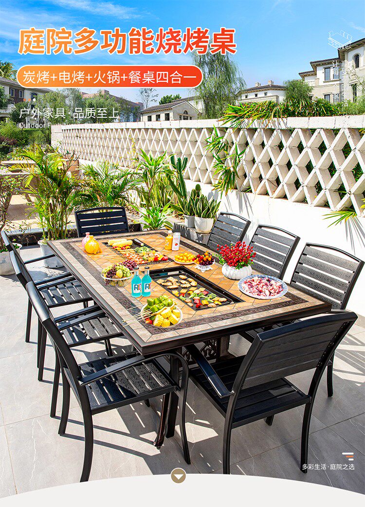 Стол для барбекю на открытом воздухе уголь уголь жареный горячий горшок сад терраса на открытом воздухе.
