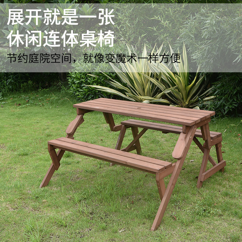 Парк стул на открытом воздухе карбонизированный деревянный столик для отдыха и стул двор складной стол.