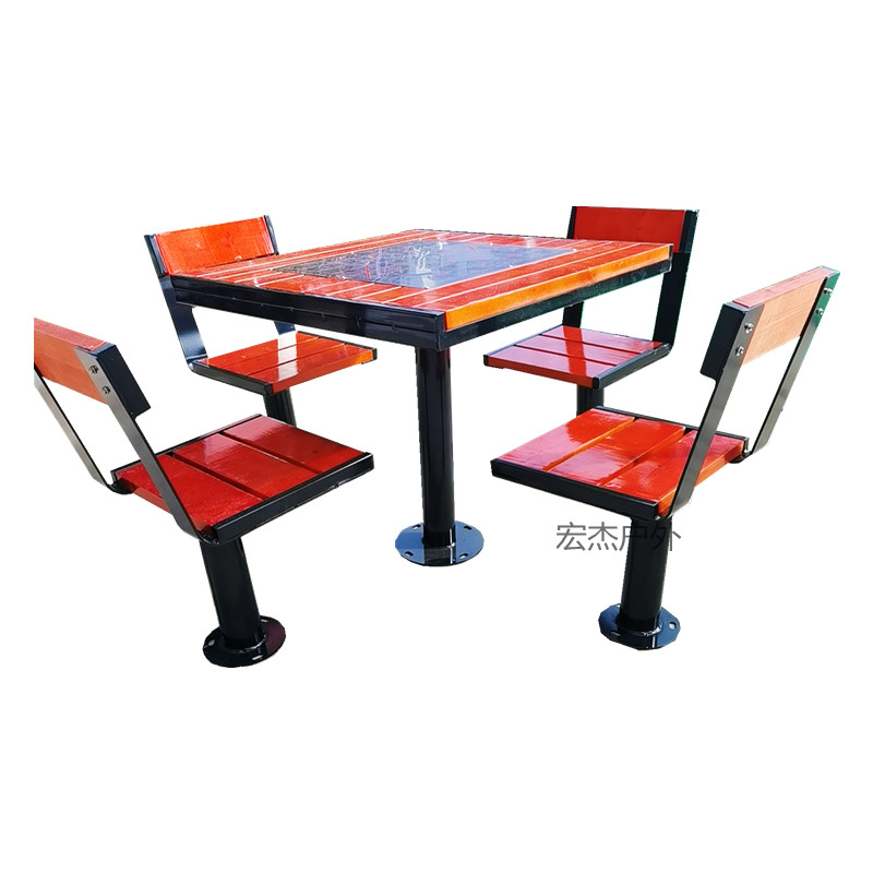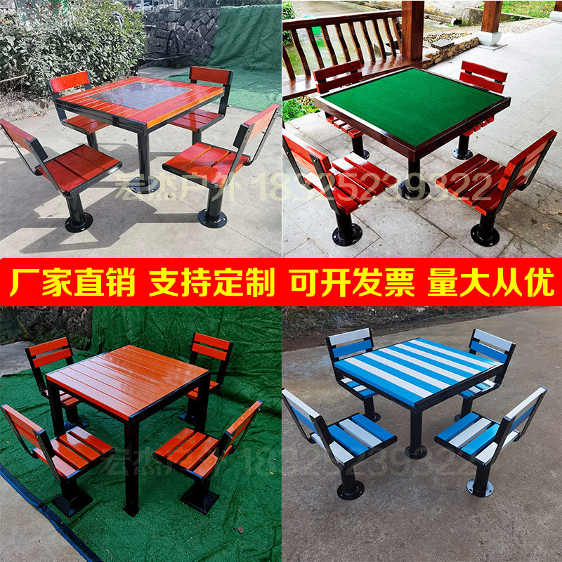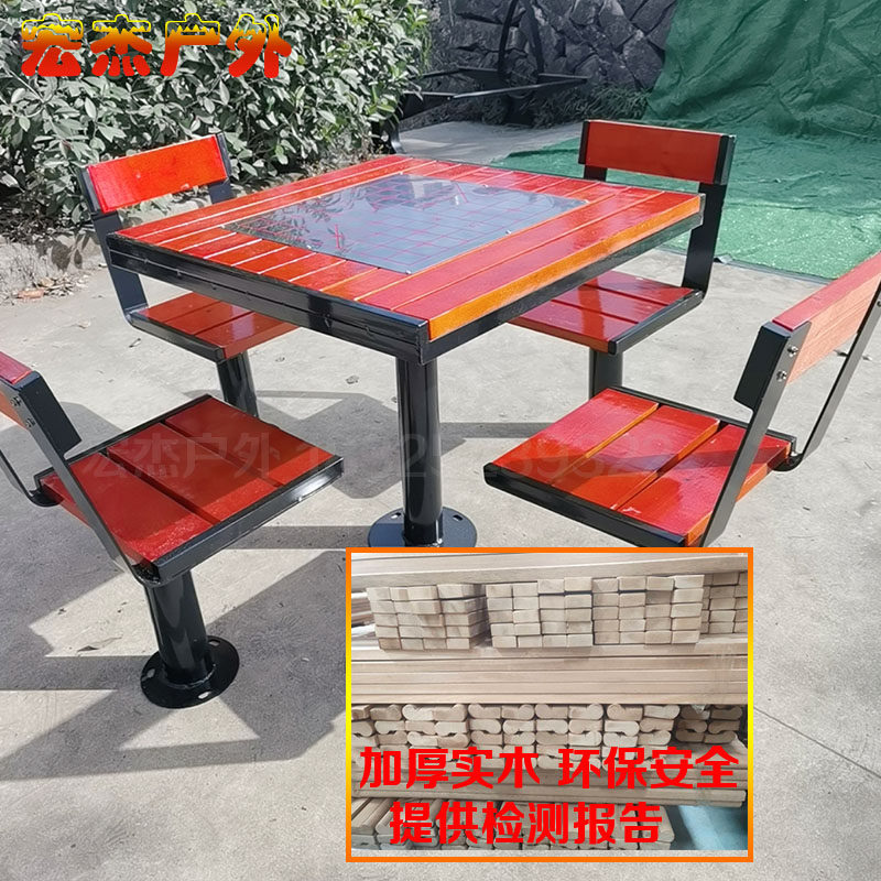 Парк открытый стол и стул пожилой шахматной доски шесть -блюда в соединении на открытом воздухе.