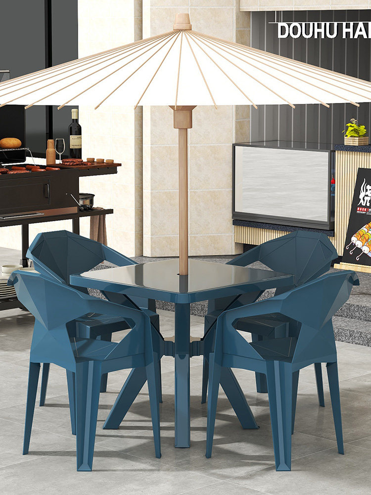 Утолщенное модное пластиковое кресло со спинкой, комбинация стола и стула для продуктового ларька, простой квадратный стол на открытом воздухе в парке