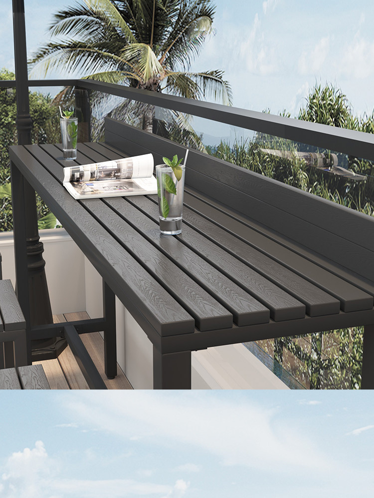 Семейный отдых на открытом воздухе, балкон, бар, стол и стул, комбинация крыши, двор, кафе, терраса, длинный стол на высоких ножках