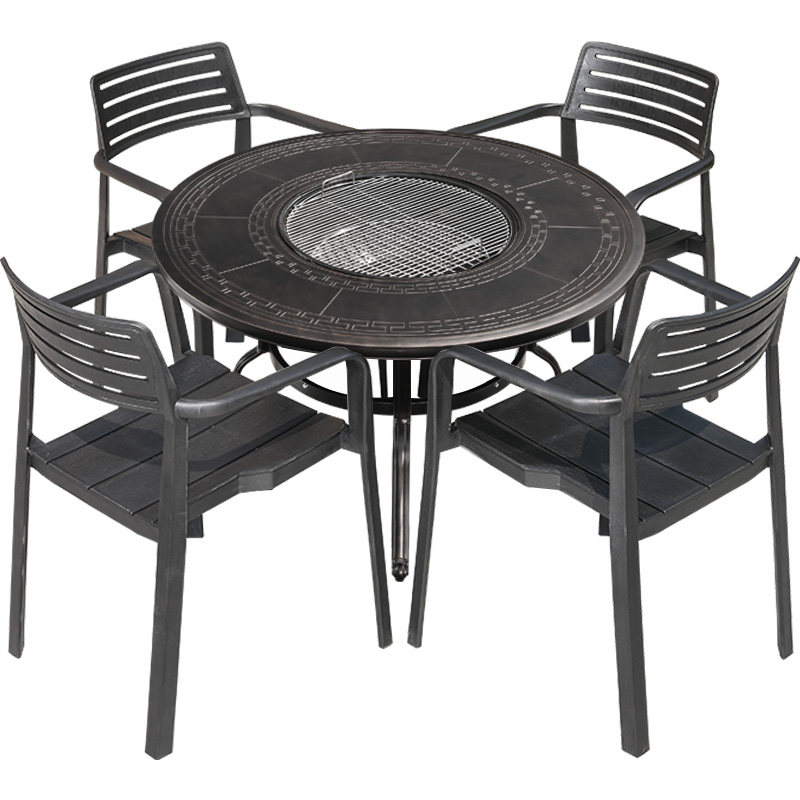 Столы для барбекю на открытом воздухе и стулья отлито