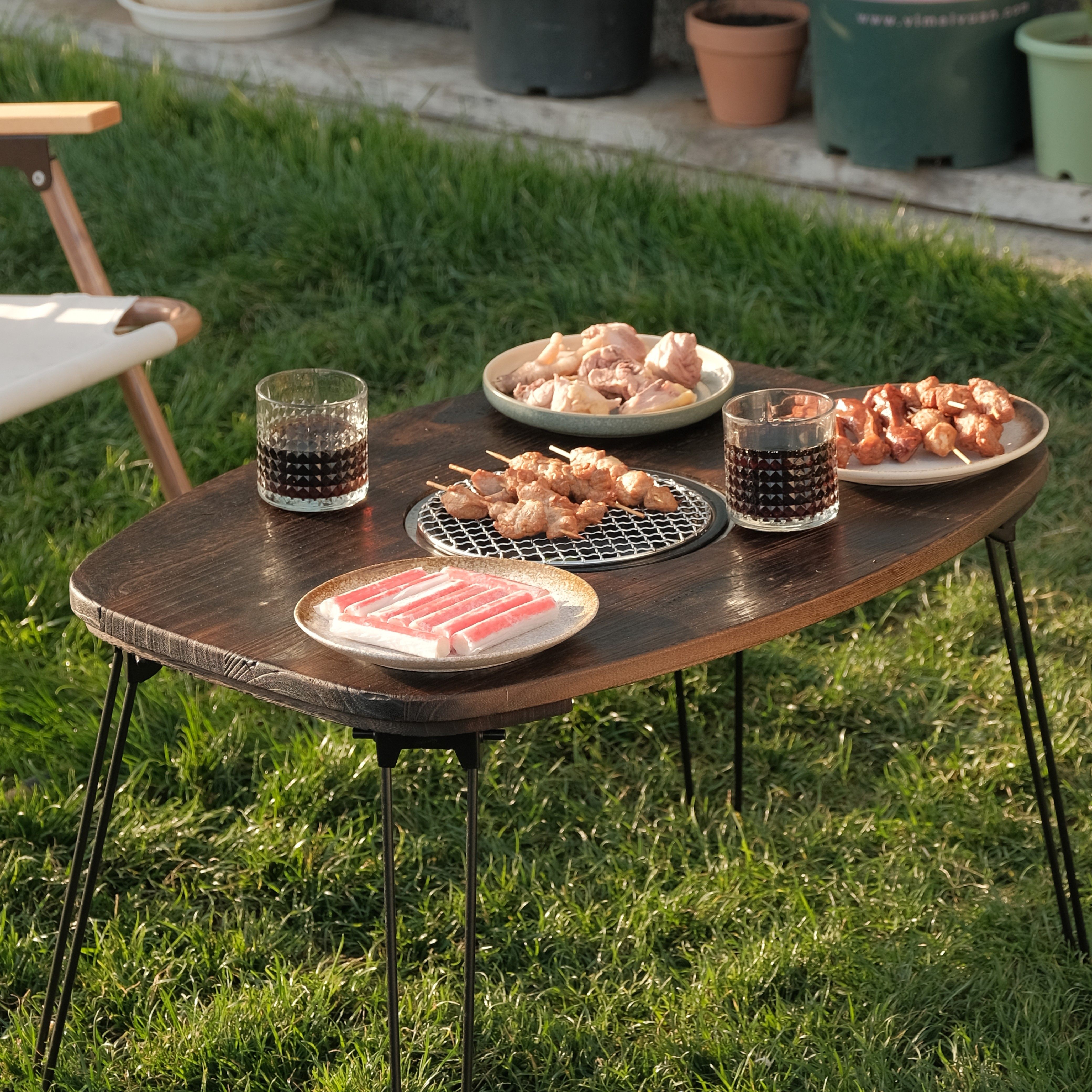 Стол для барбекю для сада можно сложить за портативным столом для вареного стола для вареного чайного стола, маленький двор лагеря лагеря для барбекю