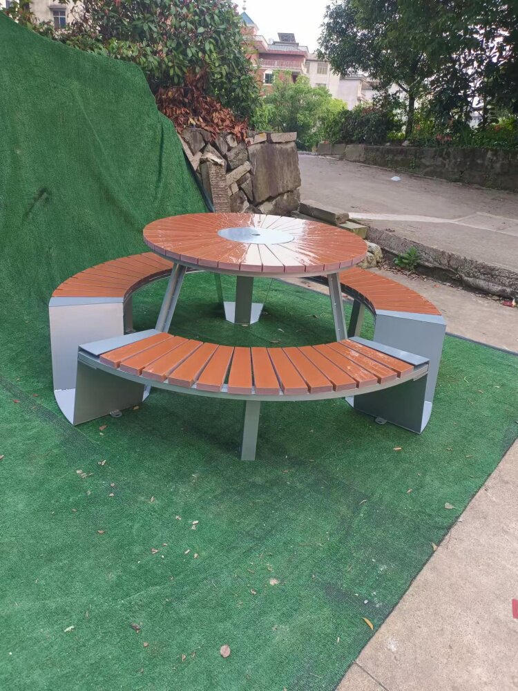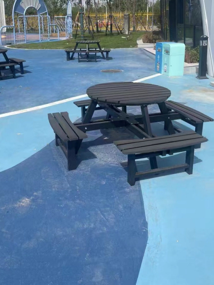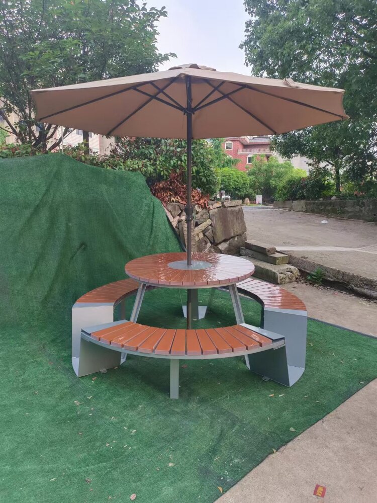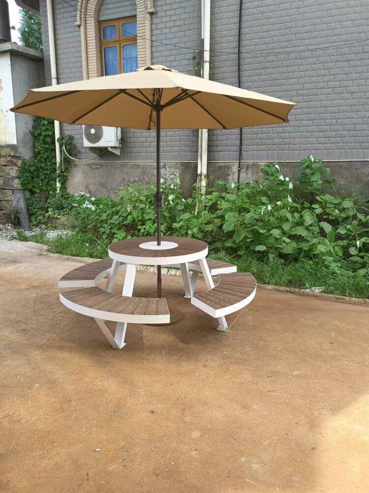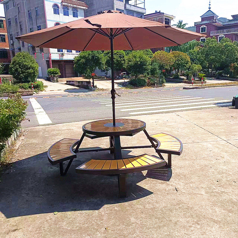 Индивидуальная комбинация стола и стула во внутреннем дворе с зонтиком, водонепроницаемым и солнцезащитным кремом B & B, зонтиком от солнца в парке на открытом воздухе, деревянным столом с защитой от коррозии