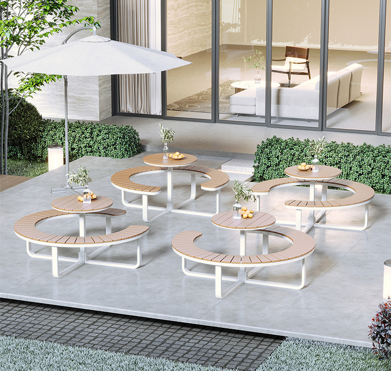 Открытый встроенный круглый стол, комбинация сада, двора, балкона, вилла под открытым небом, отдых на свежем воздухе, магазин чая с молоком, кафе, стол и стулья