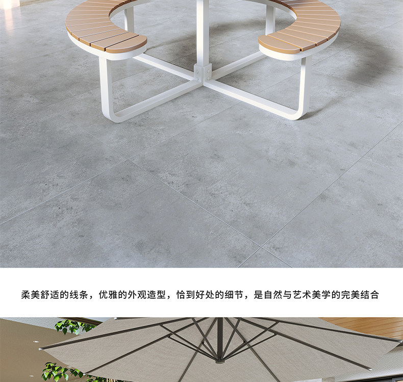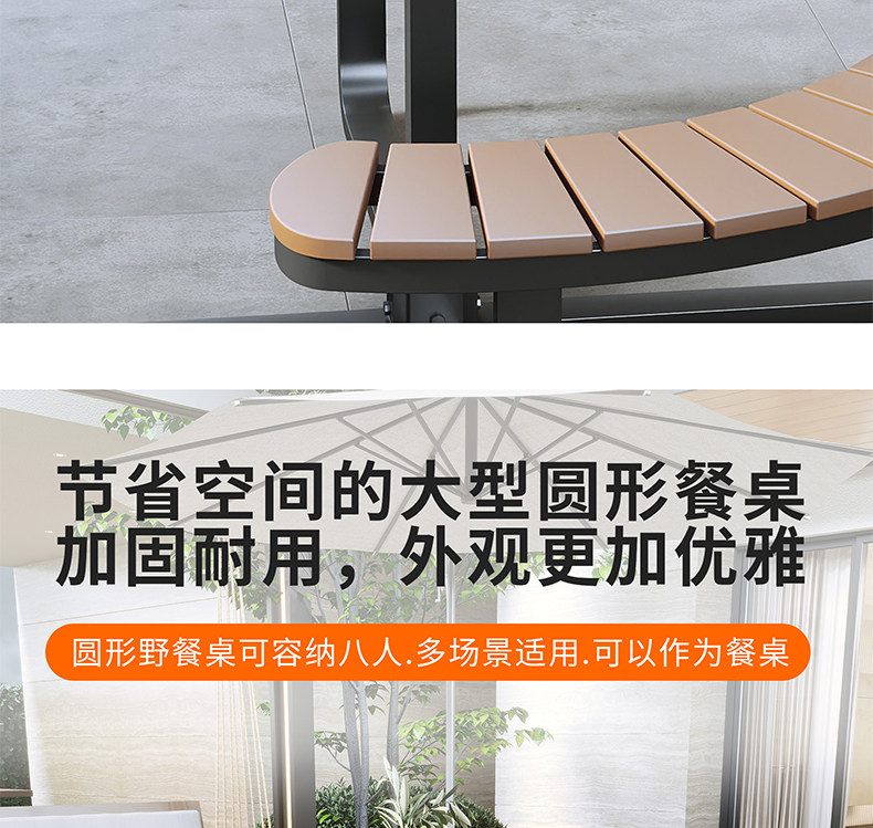 Наружный антикоррозионный пластиковый деревянный стол и стул Комбинированный столик для отдыха в садовом парке интегрированный круглый столик.