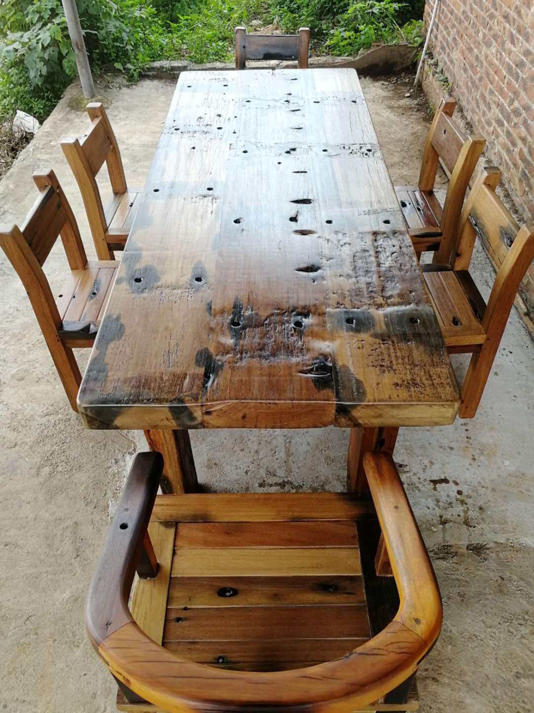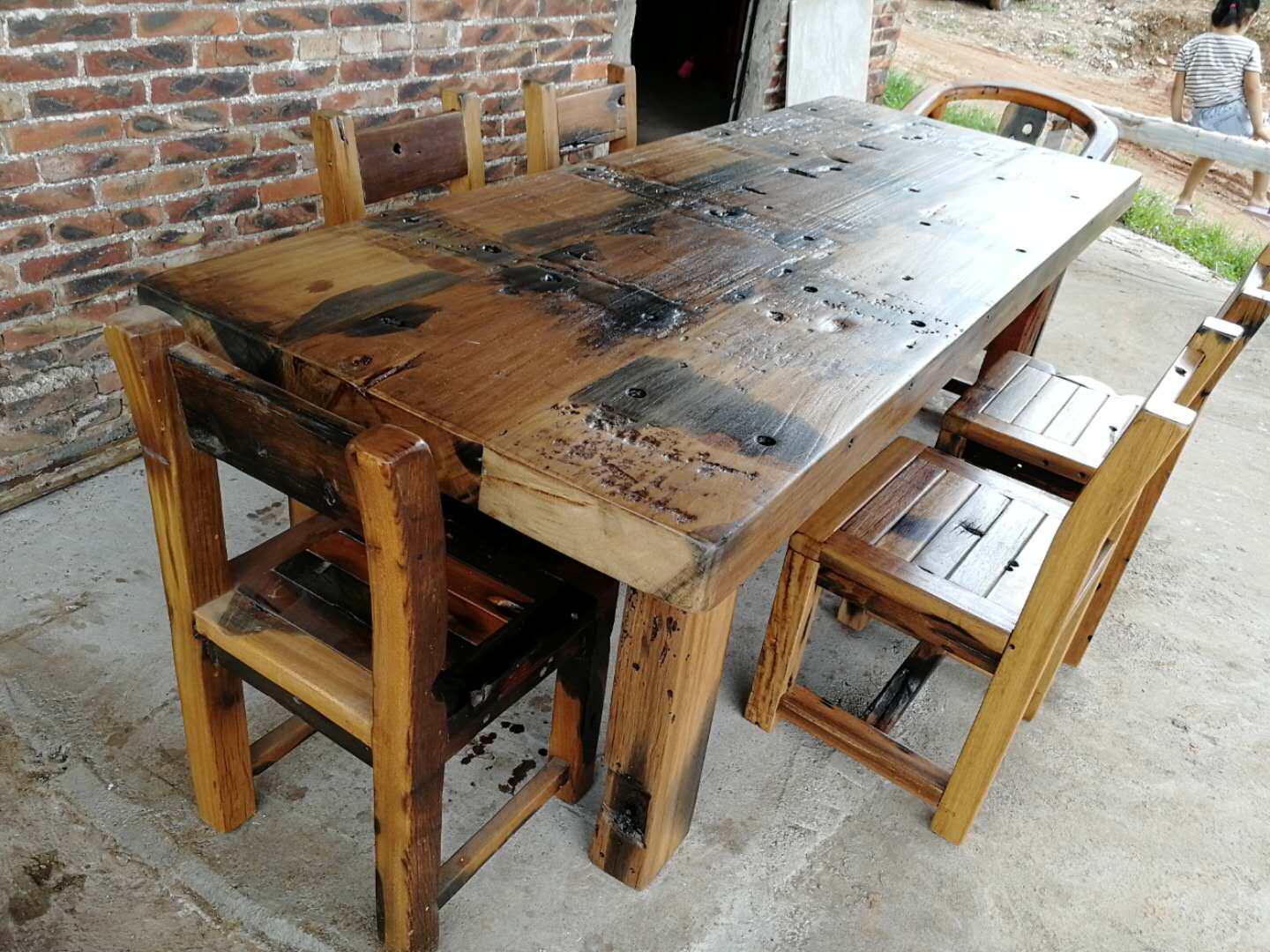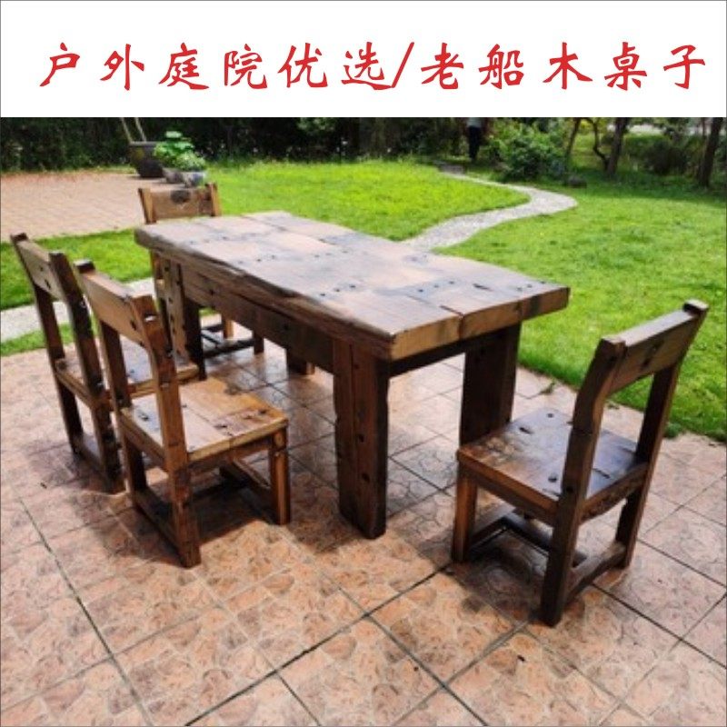 Старый лодочный деревянный стол на открытые столы и кресло двор водонепроницаемые повседневные столы Балкон лодка деревянный настольный настольный настольный дуплекс густой доска деревянный стол