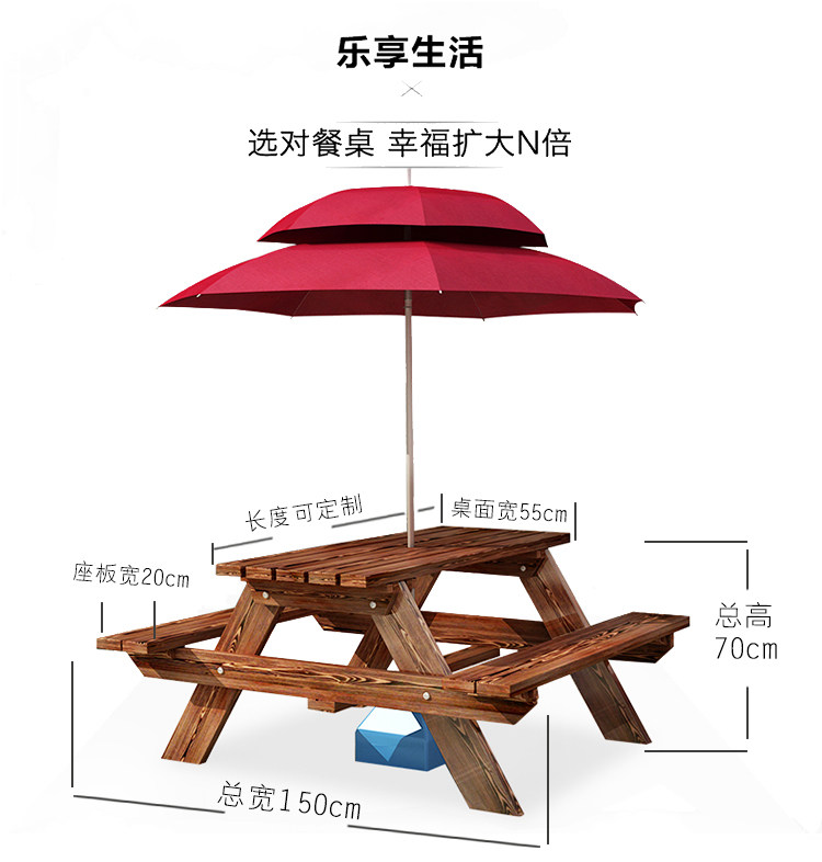 Столы на открытом воздухе и стул Комбинированные кофейни для молока для кафетерия на открытом воздухе, соединенное обеденное столовое кресло с зонтичным парком твердым древесином, антикоррозив