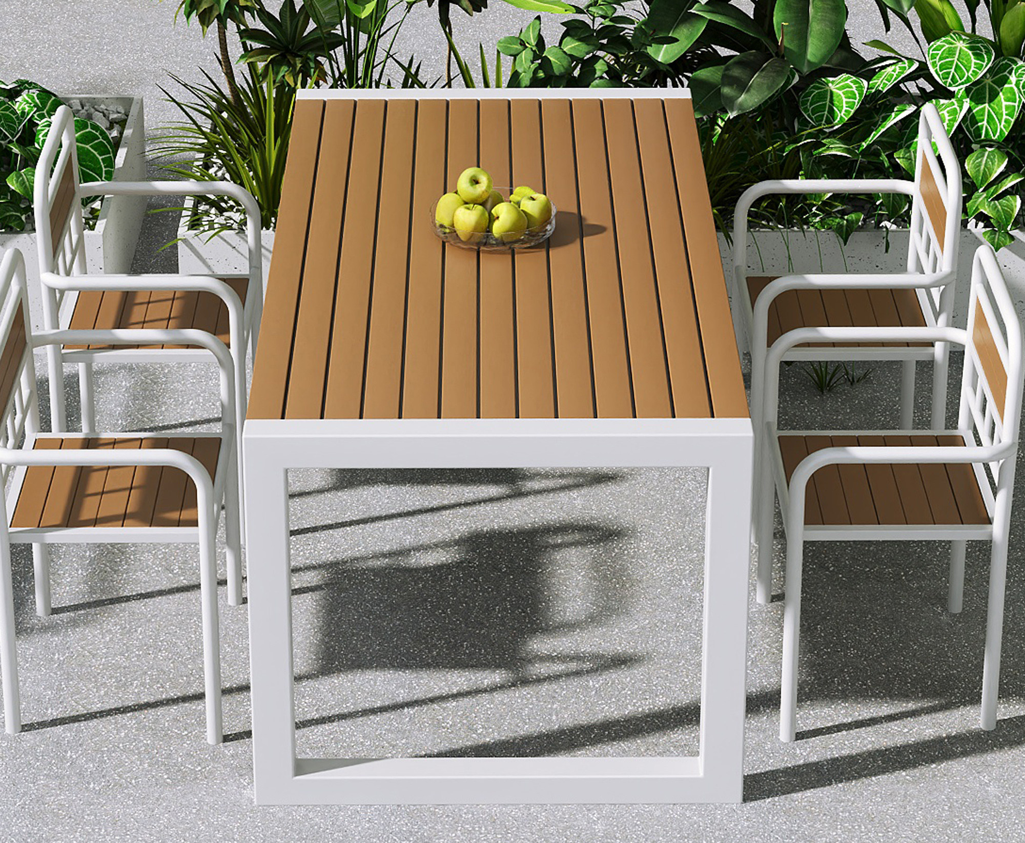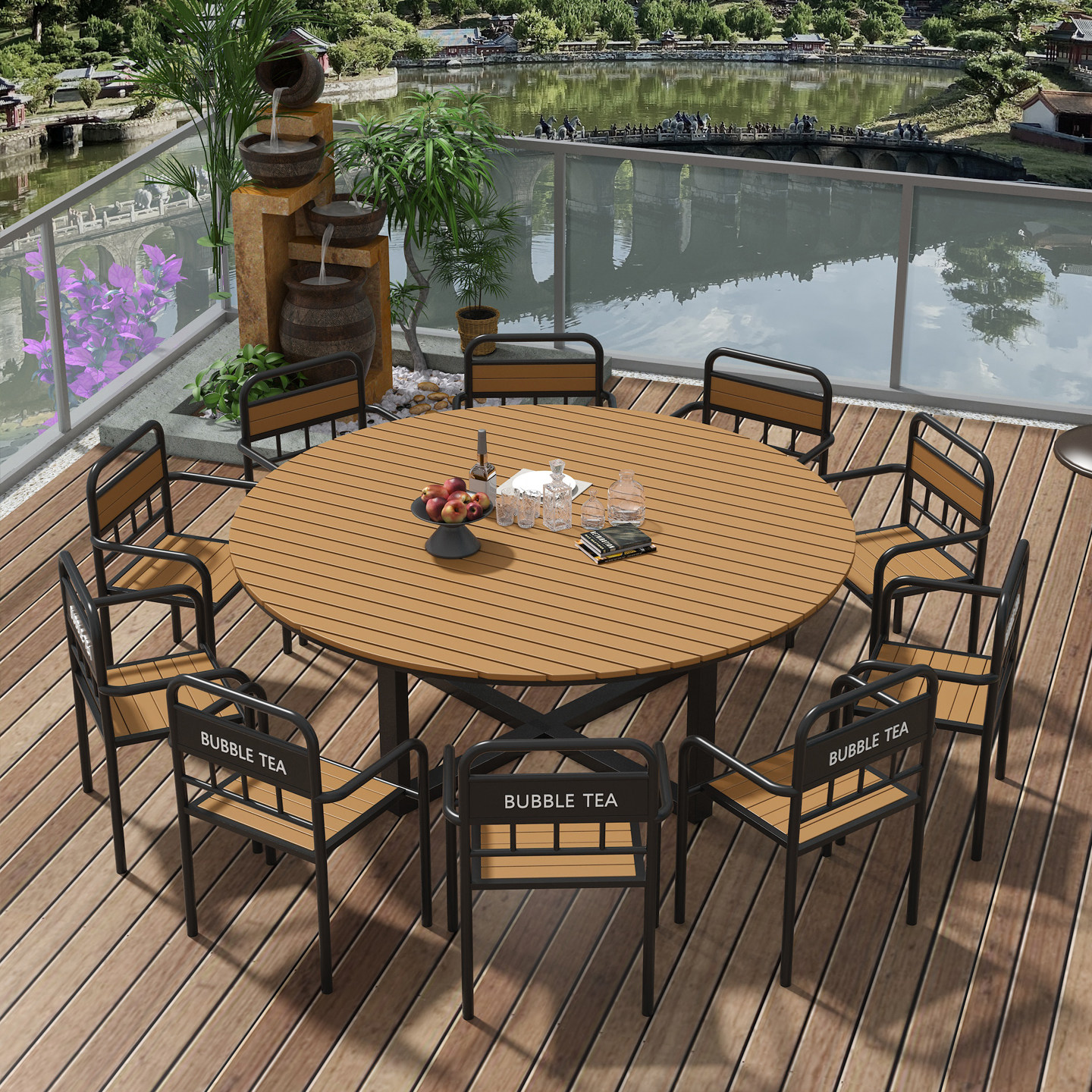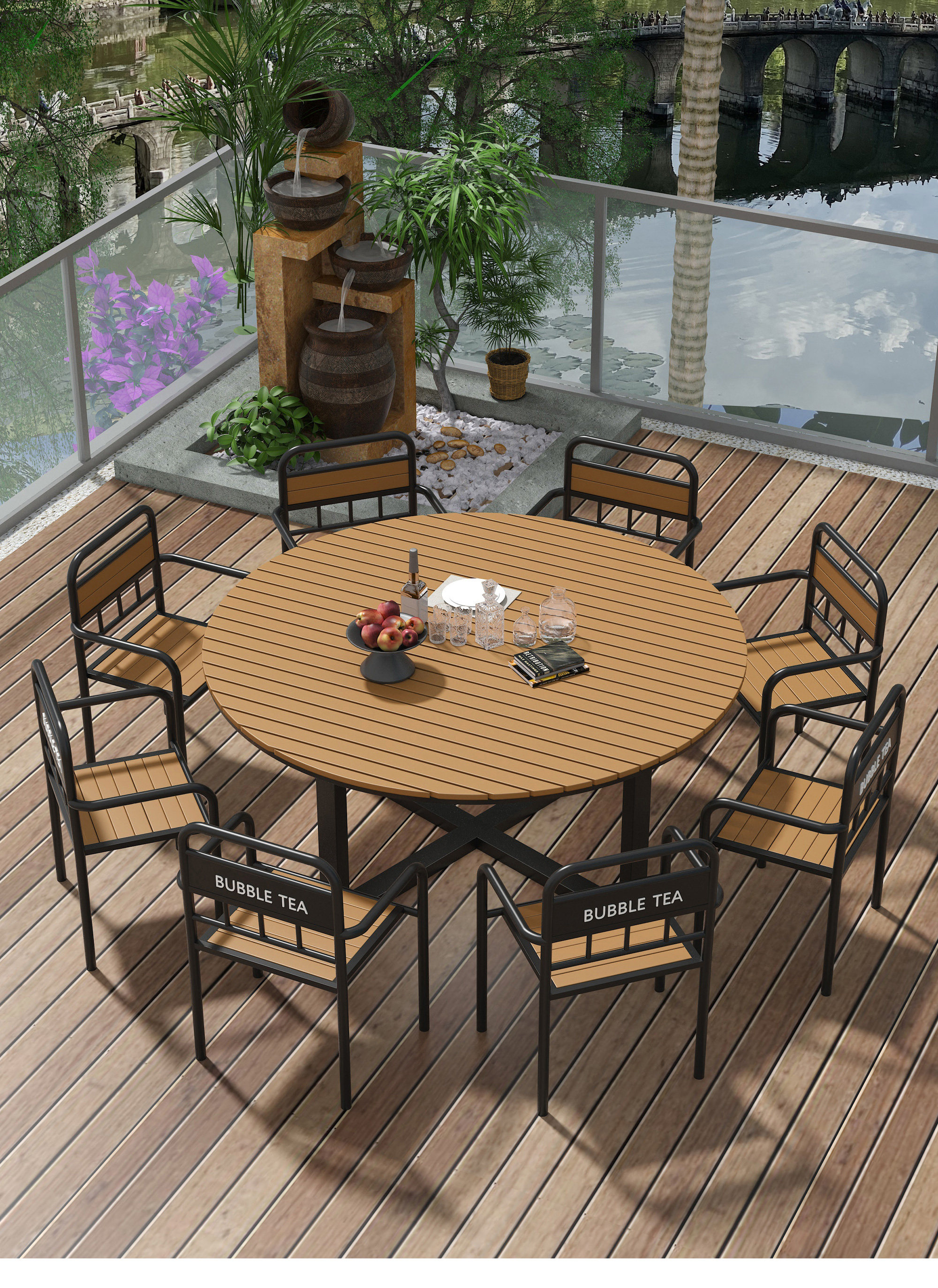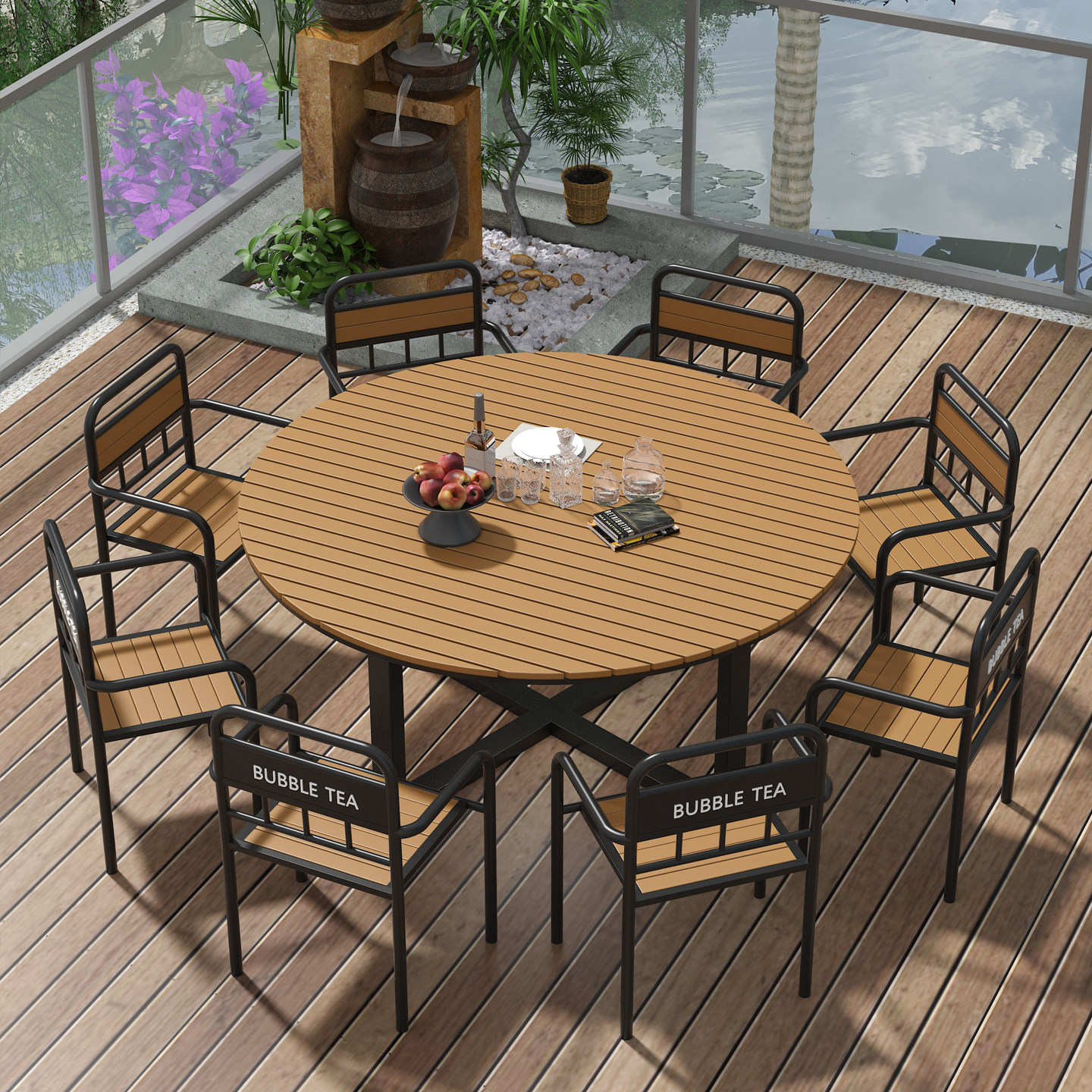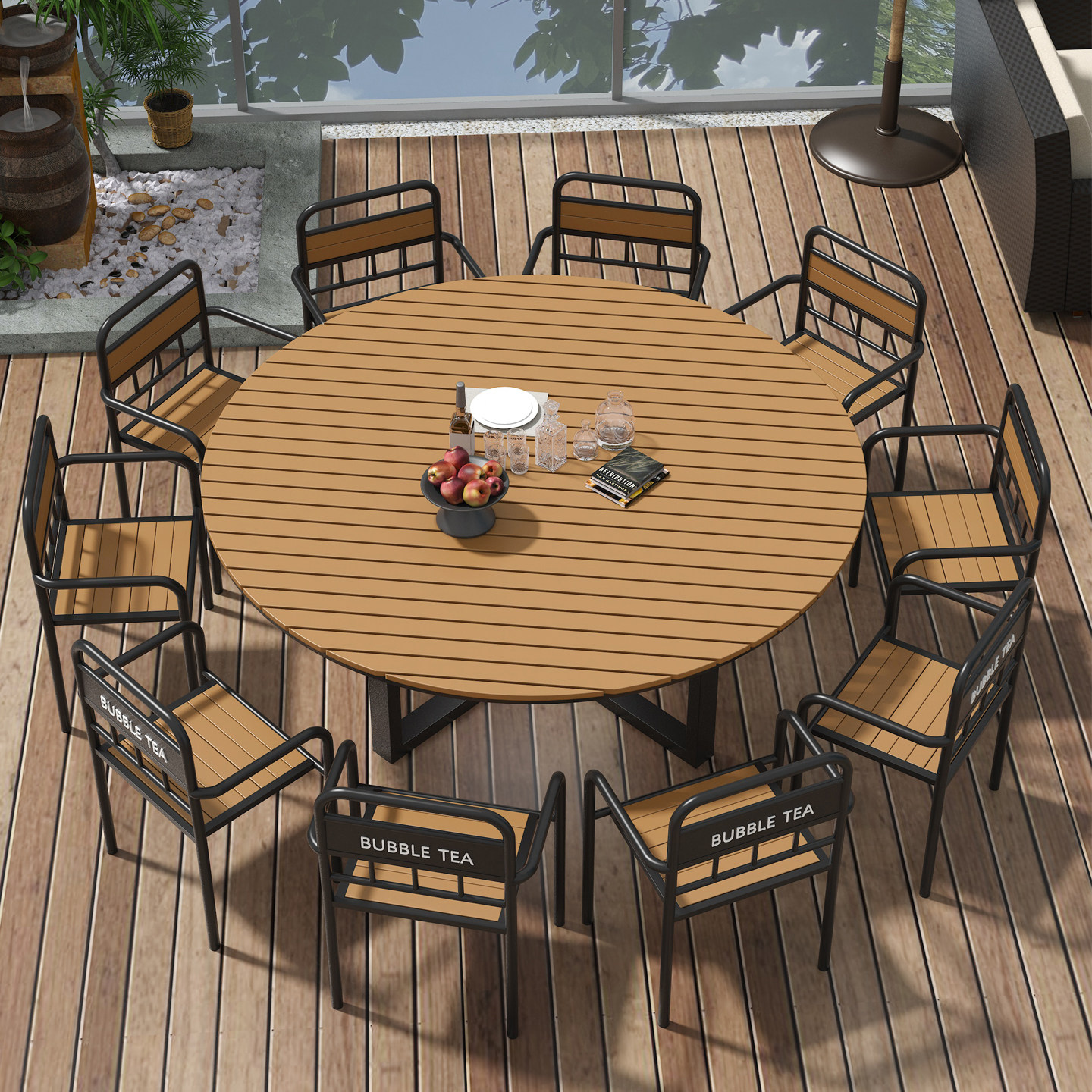 Открытый двор под открытым небом, большой круглый стол, комбинация круглого повседневного ресторана, обеденный стол и стул, комбинация обеденного стола и стульев для фермерского дома в отеле