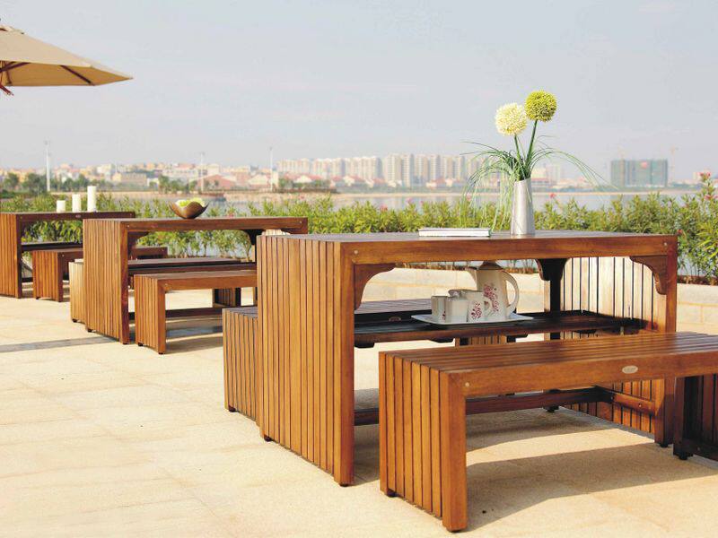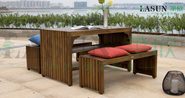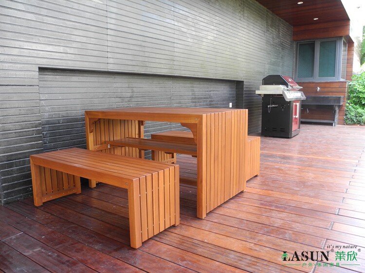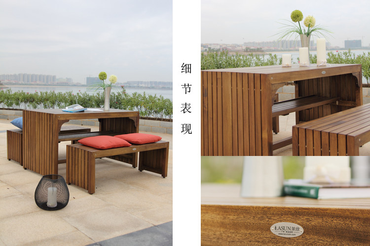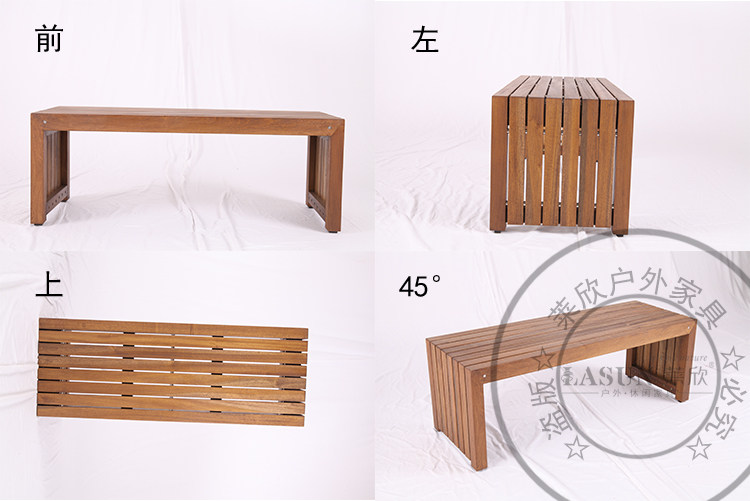 Открытая мебель для тиковой мебели балкон длинный стул Трехлопная твердая древесная терраса Комбинированная обувная табуретка вилла сад Стол Специальная цена