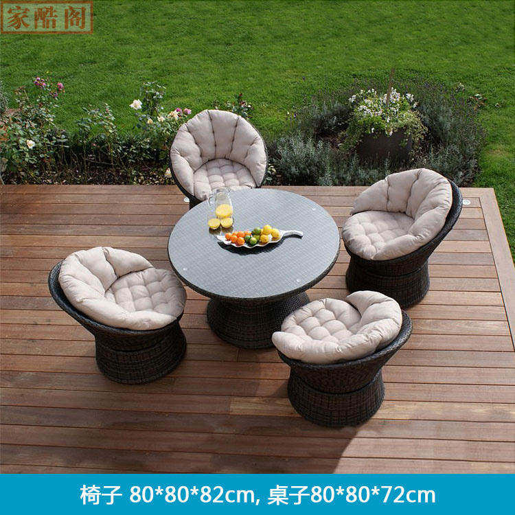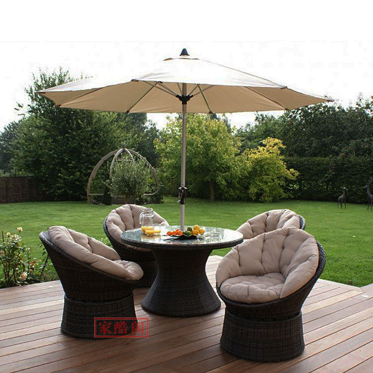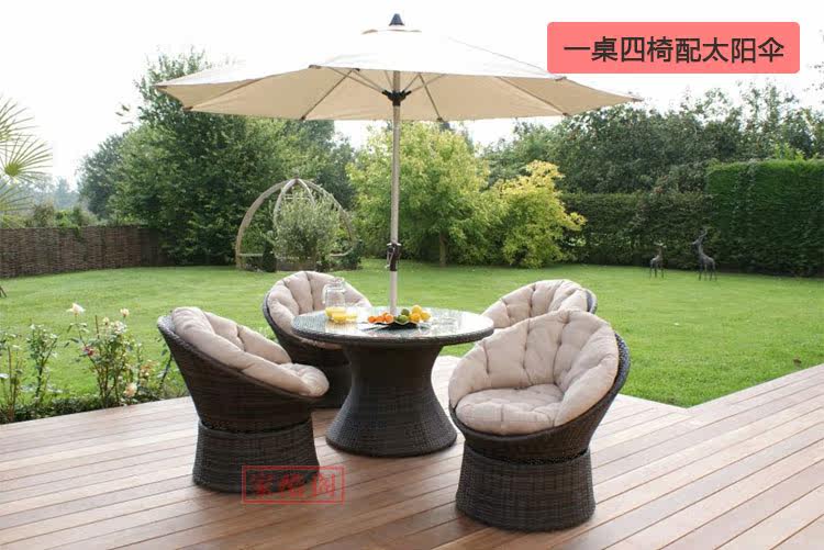 Наружный прядильный стул садовый балкон -лоза, крыша, столик и стул, пять круглых круглых виноградников с солнцем зонтиком