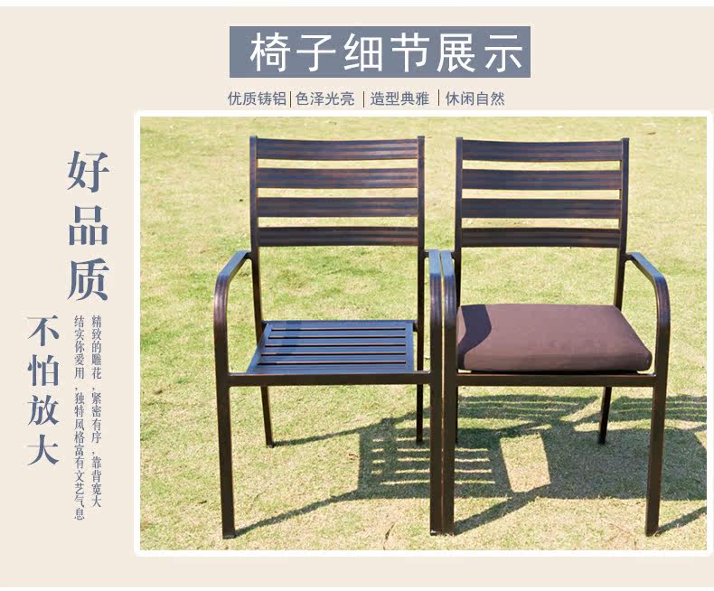 Материал изделия | [Полные алюминиевые характеристики]: наружный, водонепроницаемый солнцезащитный крем, антикоррозия, а не ржавчина.Стол и стул равномерно сформированы в алюминиевой трубке. | |||