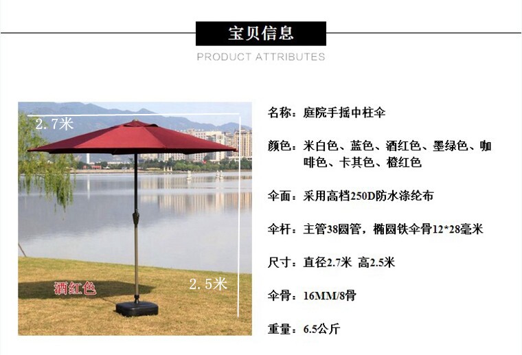Размер таблицы накусов 90*150*73 смРазмер тревоги составляет 2,7 метра высотой, 2,5 метра, 220 грамм водонепроницаемой полиэфирной ткани 8 -корточных зонтичных стержней 38 мм резервуара с водой 50 кот после воды