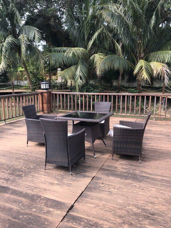 Стол на открытом воздухе, стул, балконный стол, стул, стул, стул, черная модель, полнопроизводимый стул с ограниченной высокой высокой торговлей и стул.