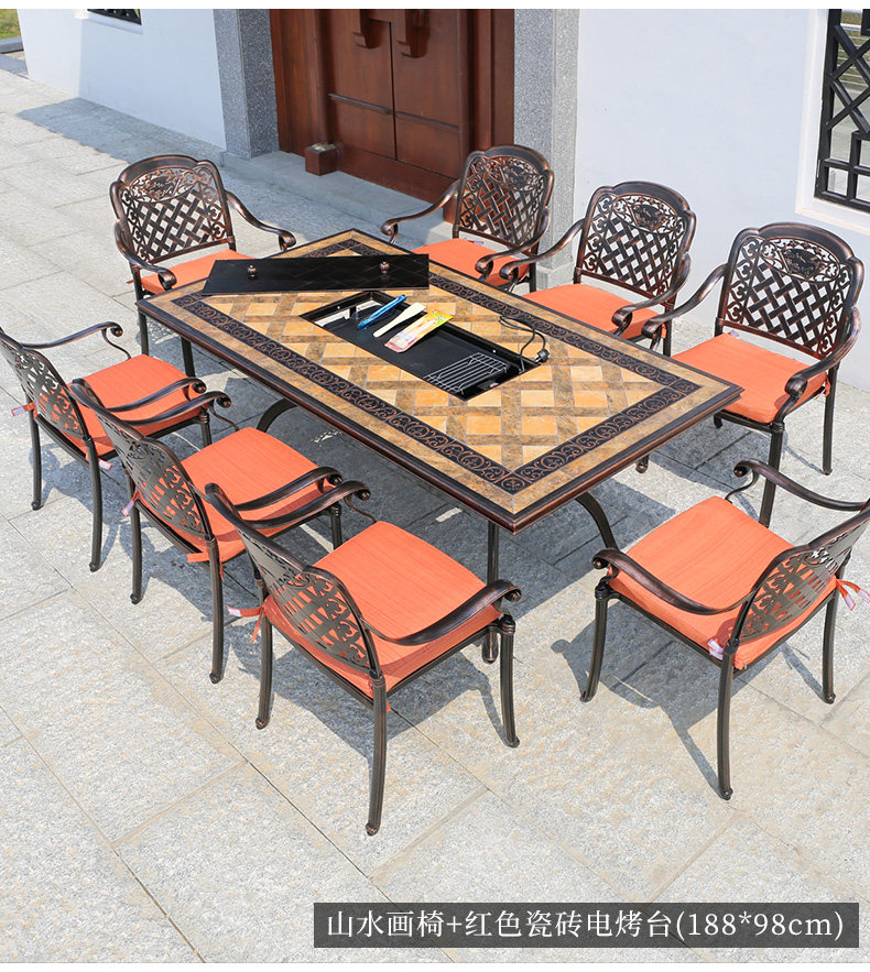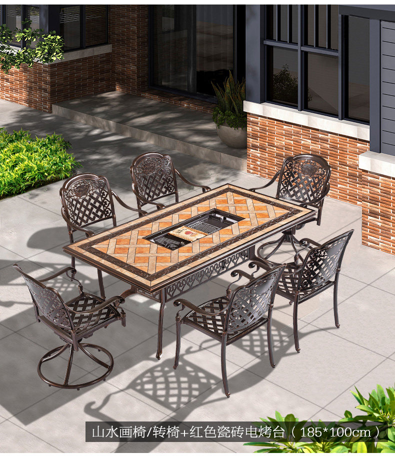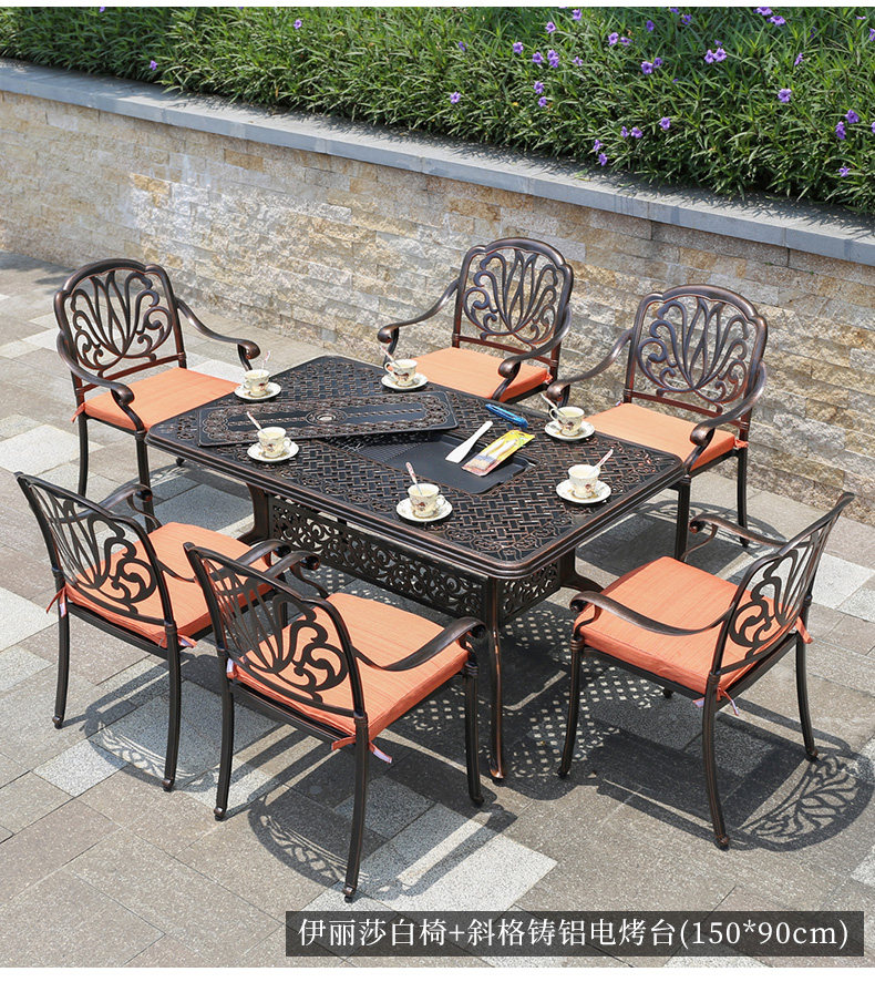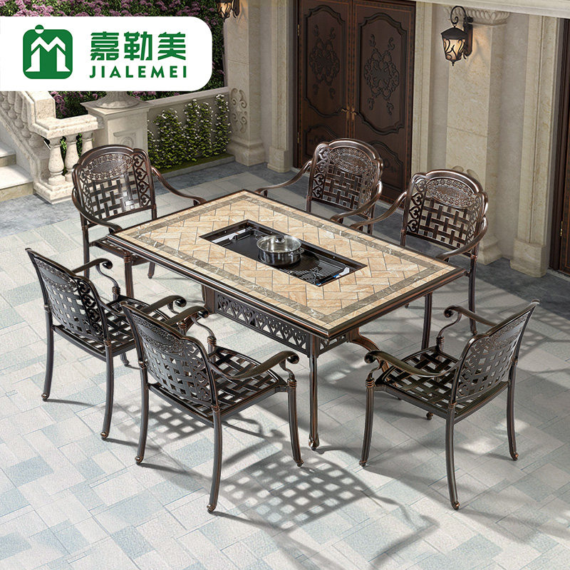 Jialemei Cast Алюминиевые столы и стулья, электрическое барбекю, открытый открытый открытый небо.