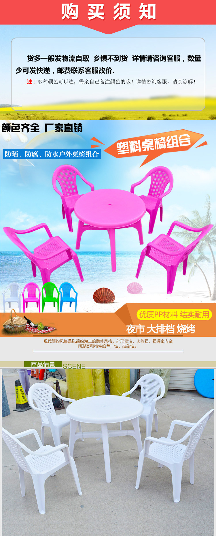 Новые ингредиенты пластиковой барбекю стойла на ночном рынке сгущенной столовый пляж повседневный круглый стол на открытом воздухе и стул Сочетание утолщены