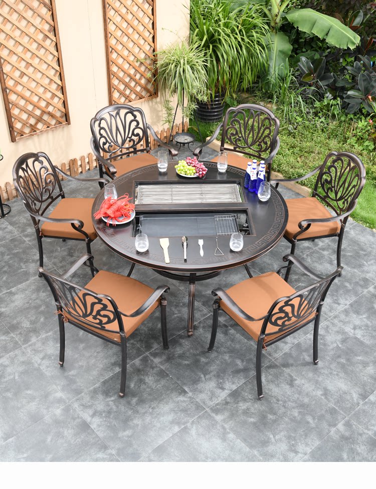 Открытый стол и кресло двор двор на открытом воздухе.