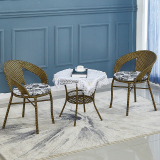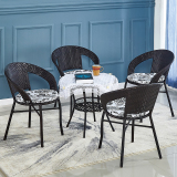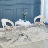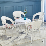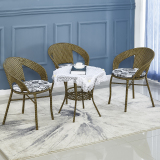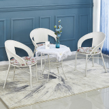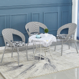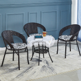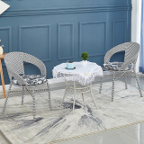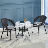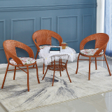 Небольшое ломовое кресло с тремя балконами на балконе маленький кофейный столик.