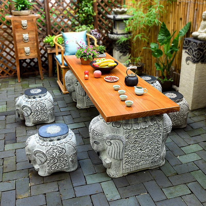 Новый китайский чайный стол чайный стол Zen Стол стул и стул на открытом воздухе Большой черный чайный терминал на открытом воздухе. Имитация каменного пирса Имитация цемента.
