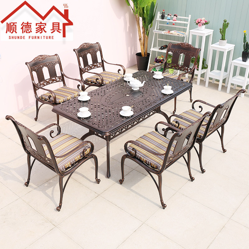 Столы на открытом воздухе и мебель для стула Алюминиевый отдых на открытых столах и дворе кресла Три или пять комплектов балкона сад открытый -Железный стол и стул.