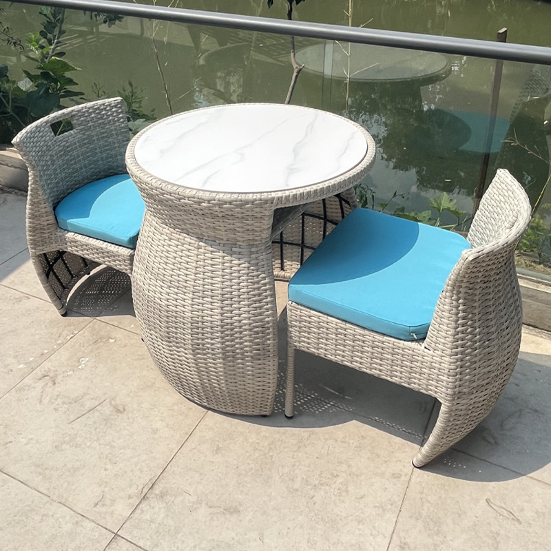 藤意 Балкон небольшой стол, стул, стул ротанга, чайный стол с тремя частями на открытом воздухе.
