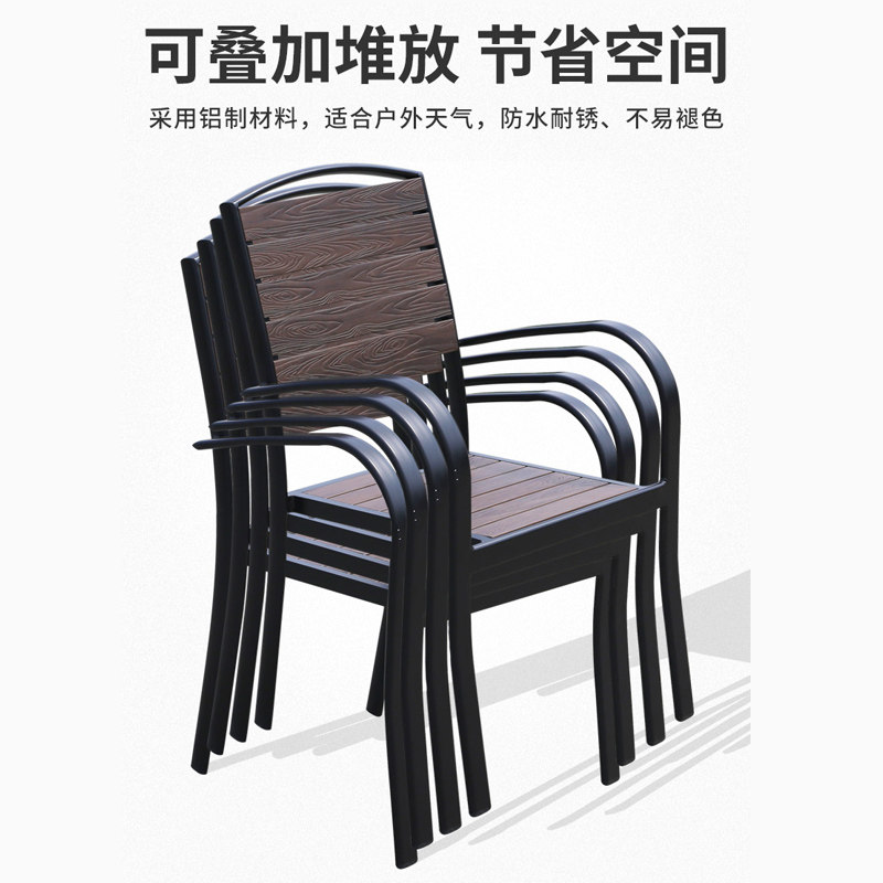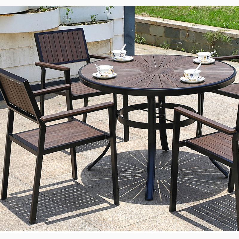 Столы на открытом воздухе и кресло сад двор Пяти -пластиковые деревянные столы и кресло.