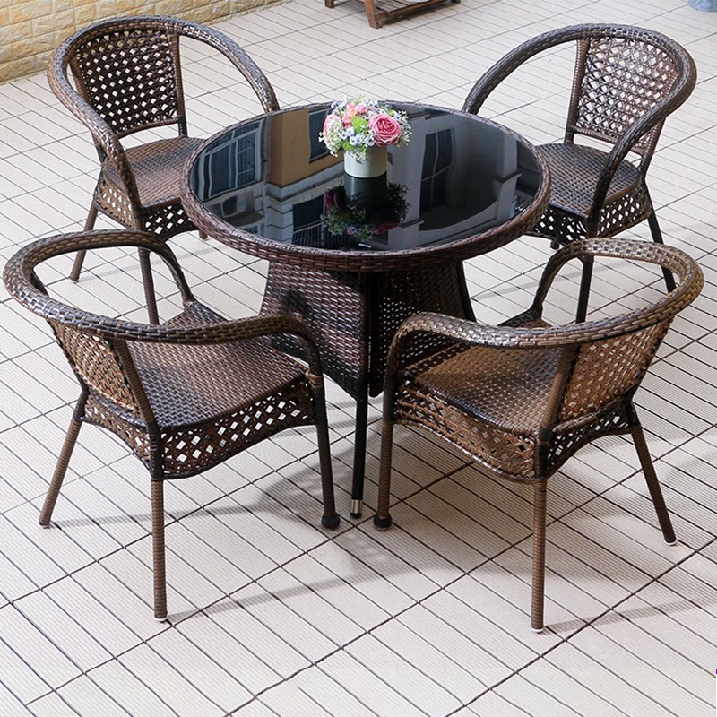 Столы на открытом воздухе и кресла для двора виноградных стульев Три -часть, расположенная из неба на балконе. Расстановка на открытом воздушном столе