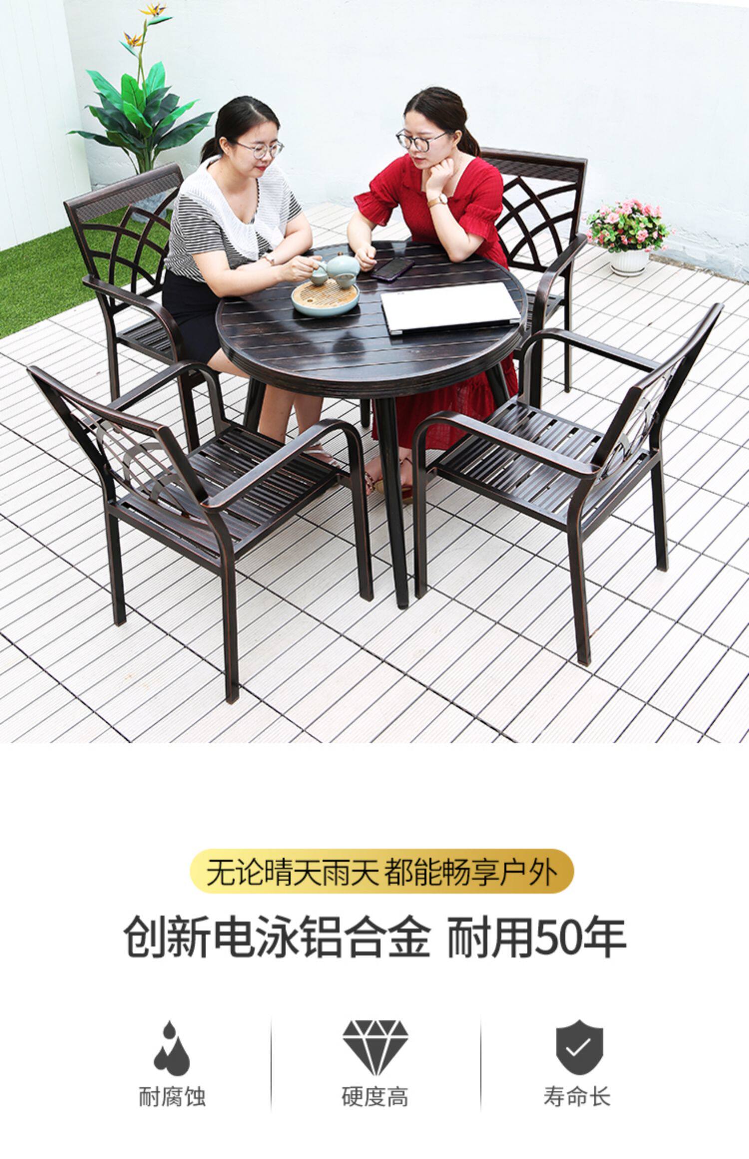 Столы на открытом воздухе и кресло Casual Aluminum сплав Garden Villas Open -Балкон -балкон -балкон в стиле европейского в стиле лисовые лист алюминиевые столы и комбинации стул