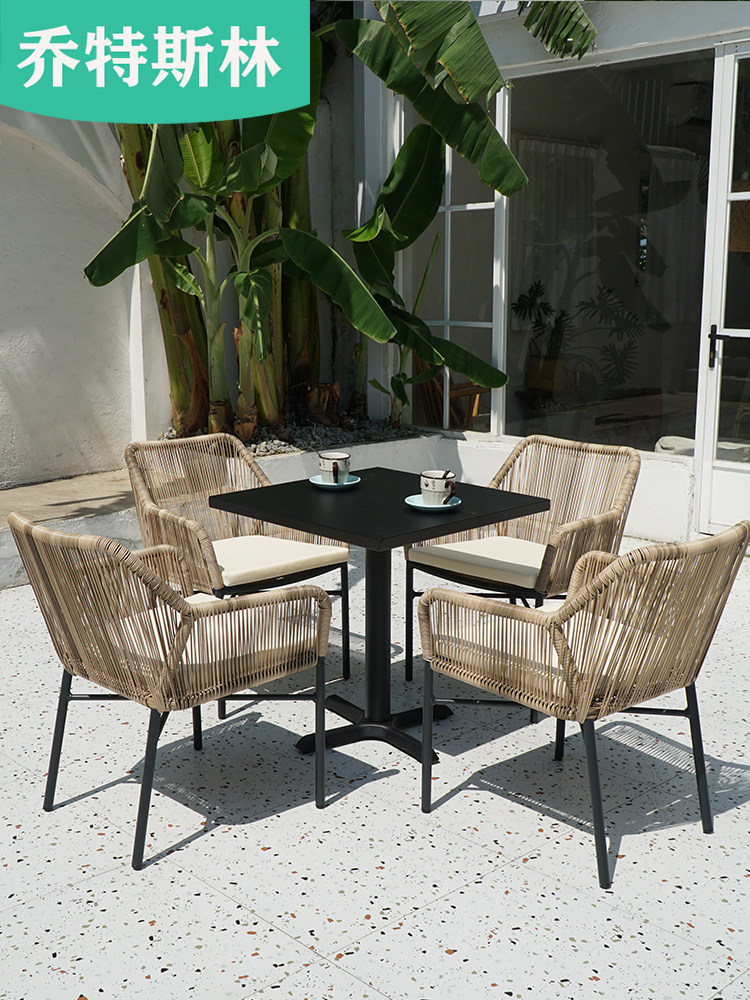 Северный минималистский настольный настольный стул стул на открытом воздухе садовая вилла во дворе кофе кофейный молоко чай магазин повседневный лозовый кресло с зонтиком