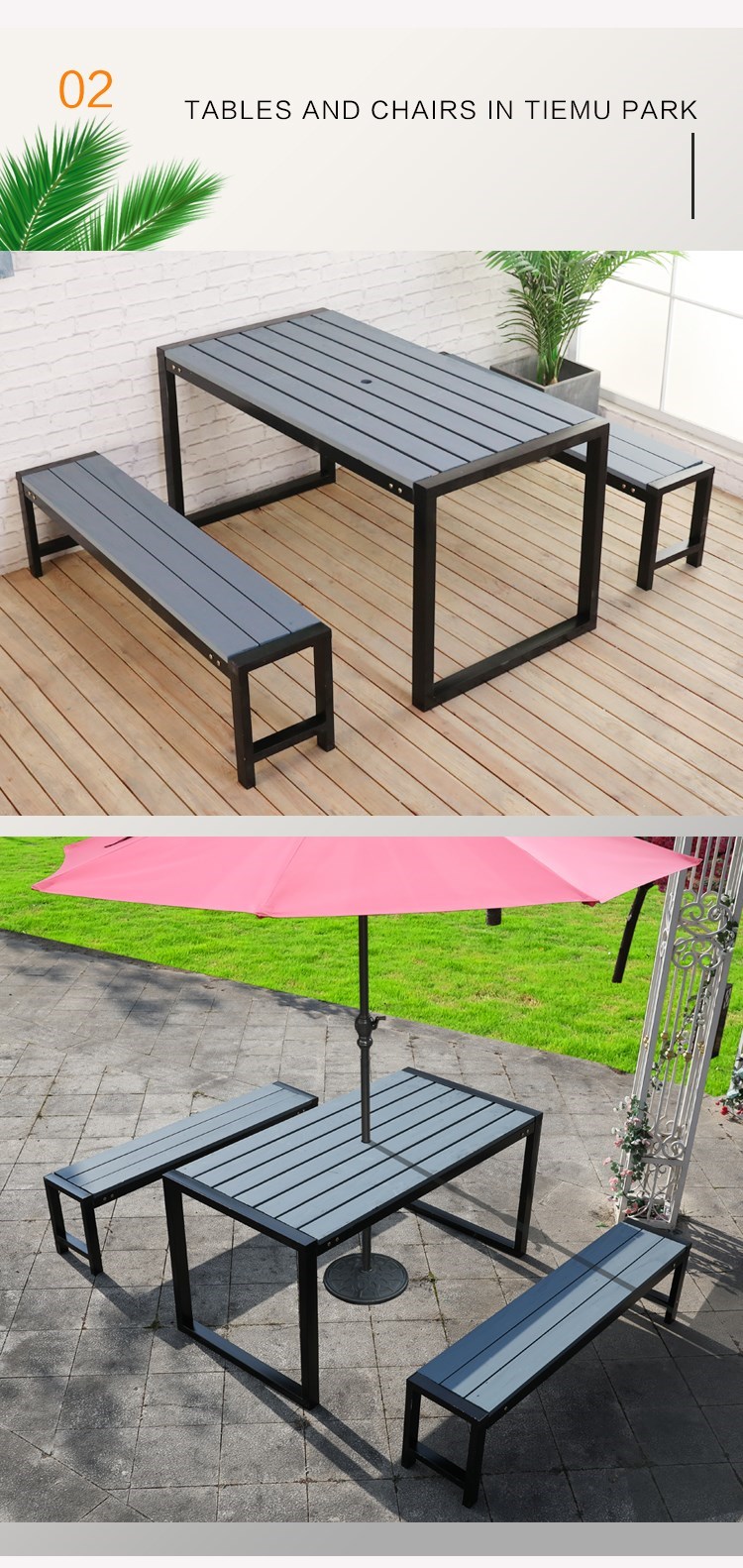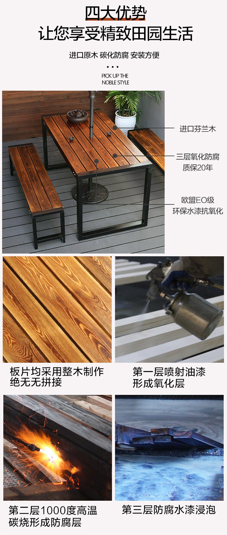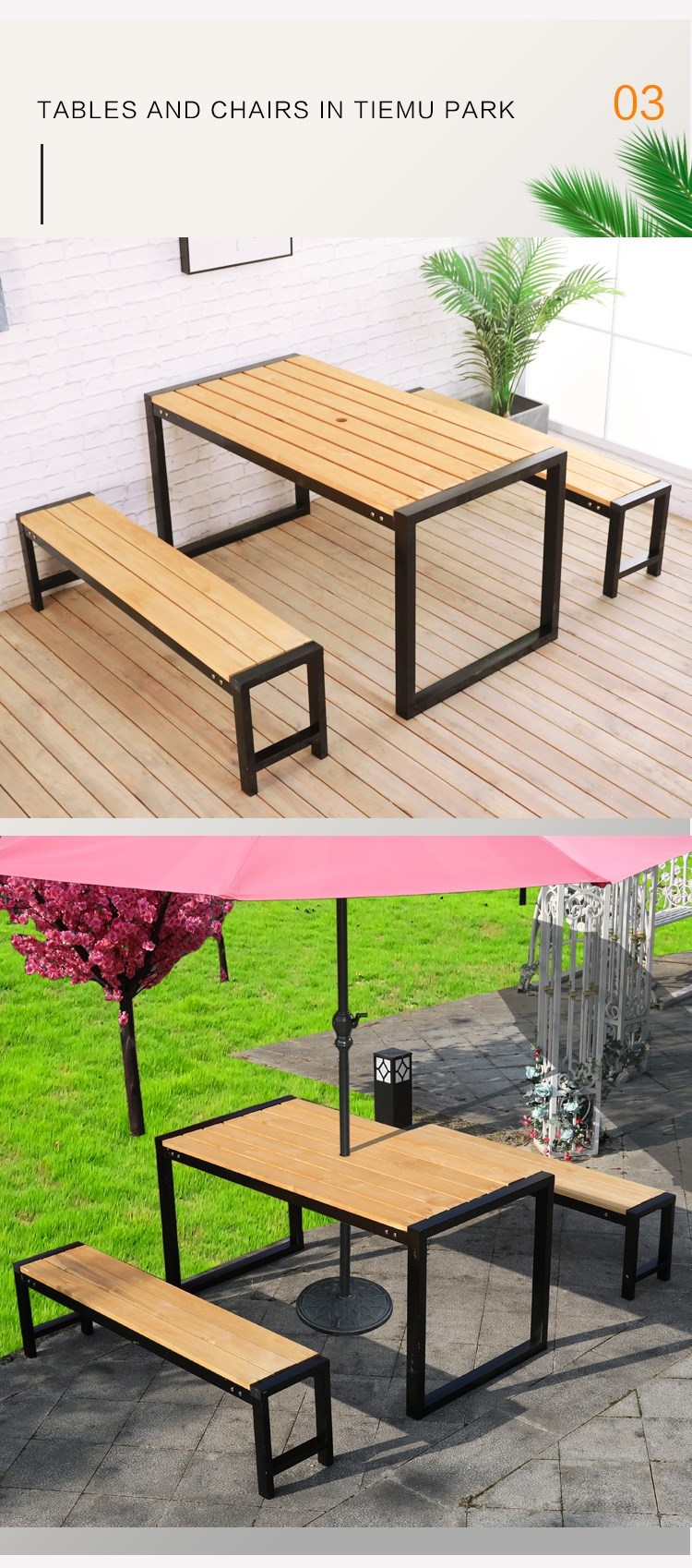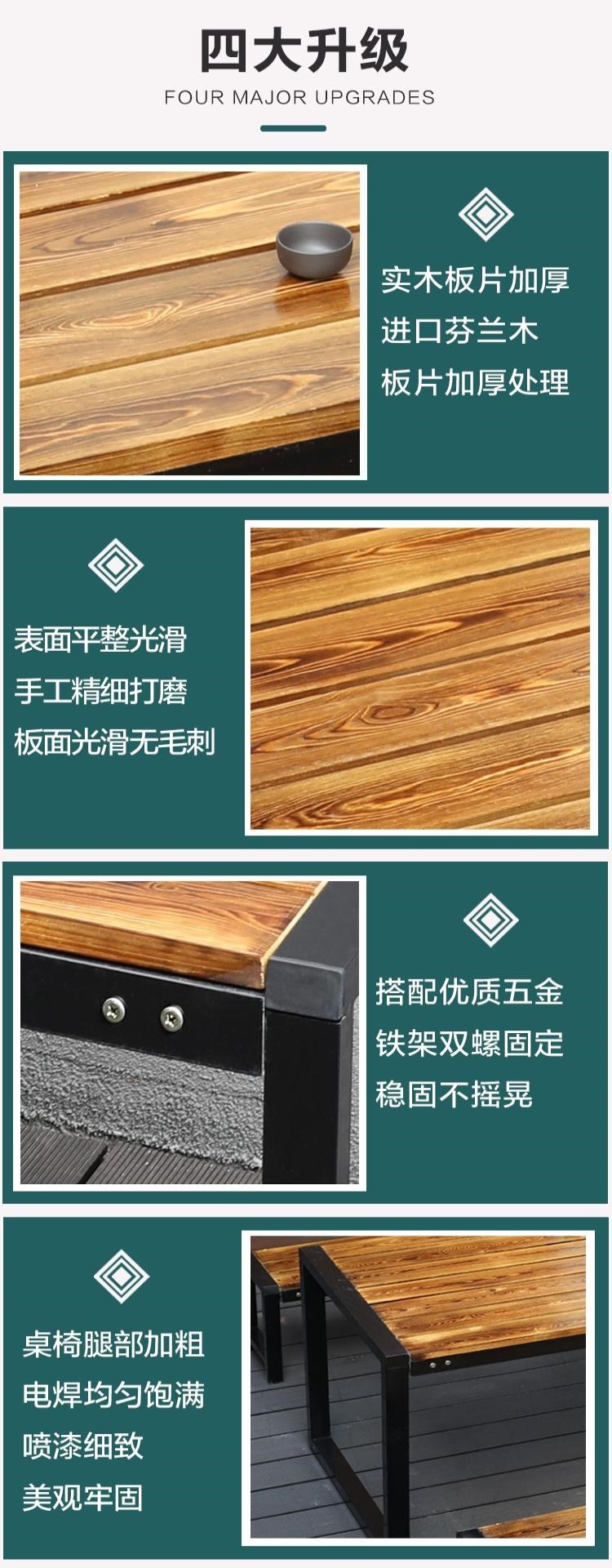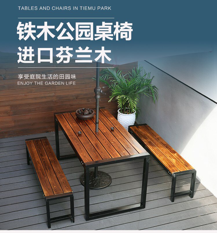 Наружные анти -коррупционные деревянные столы и комбинированные кресла Три -части железного искусства на открытом воздухе открытый балкон -набор для двора повседневной деревянный обеденный стол