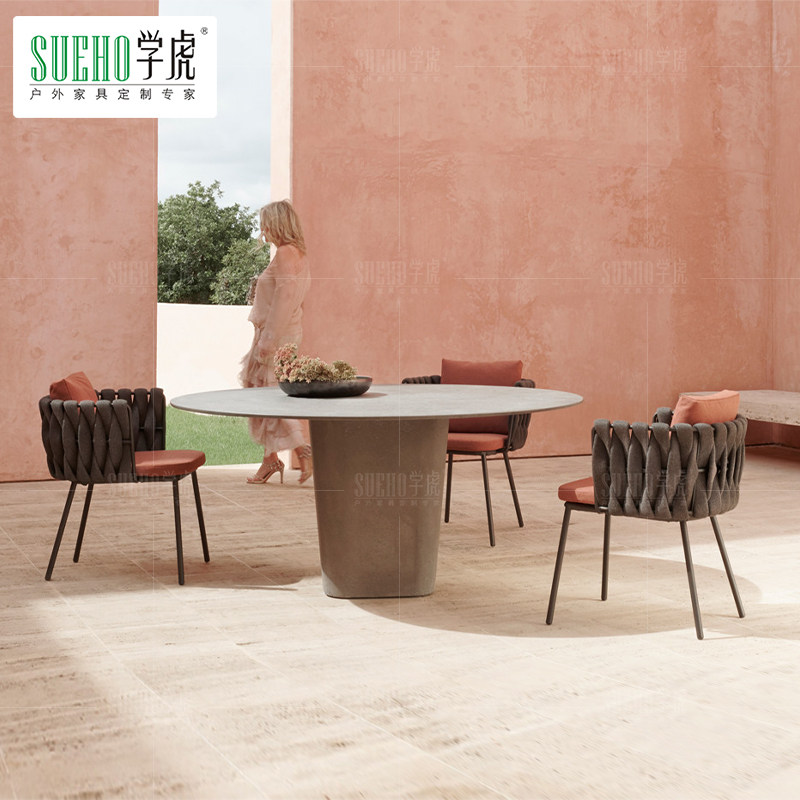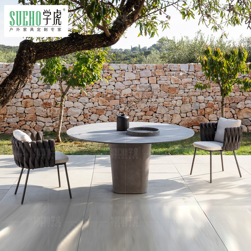 Столы на открытом воздухе и стул, ротанский балкон -внутренний двор вилла на открытом воздухе.