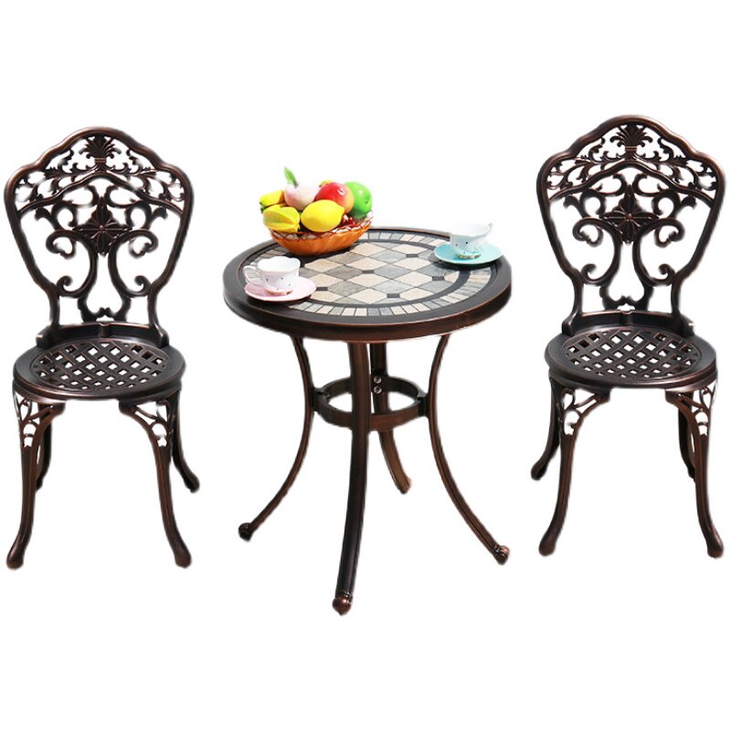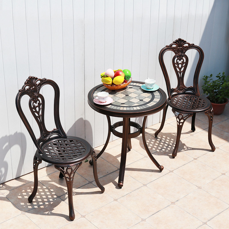 Литые алюминиевые столы и стулья, сад, двор, балкон, железная мебель для отдыха, европейский журнальный столик для террасы, набор из трех предметов, комбинация журнального столика