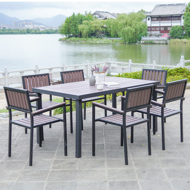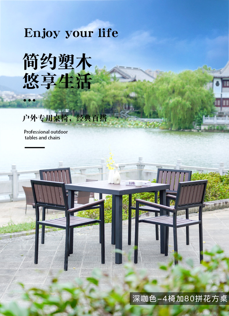- Деревянный пластик, 4 стула + мозаичный стол 80 квадратных метров [Темный кофе]