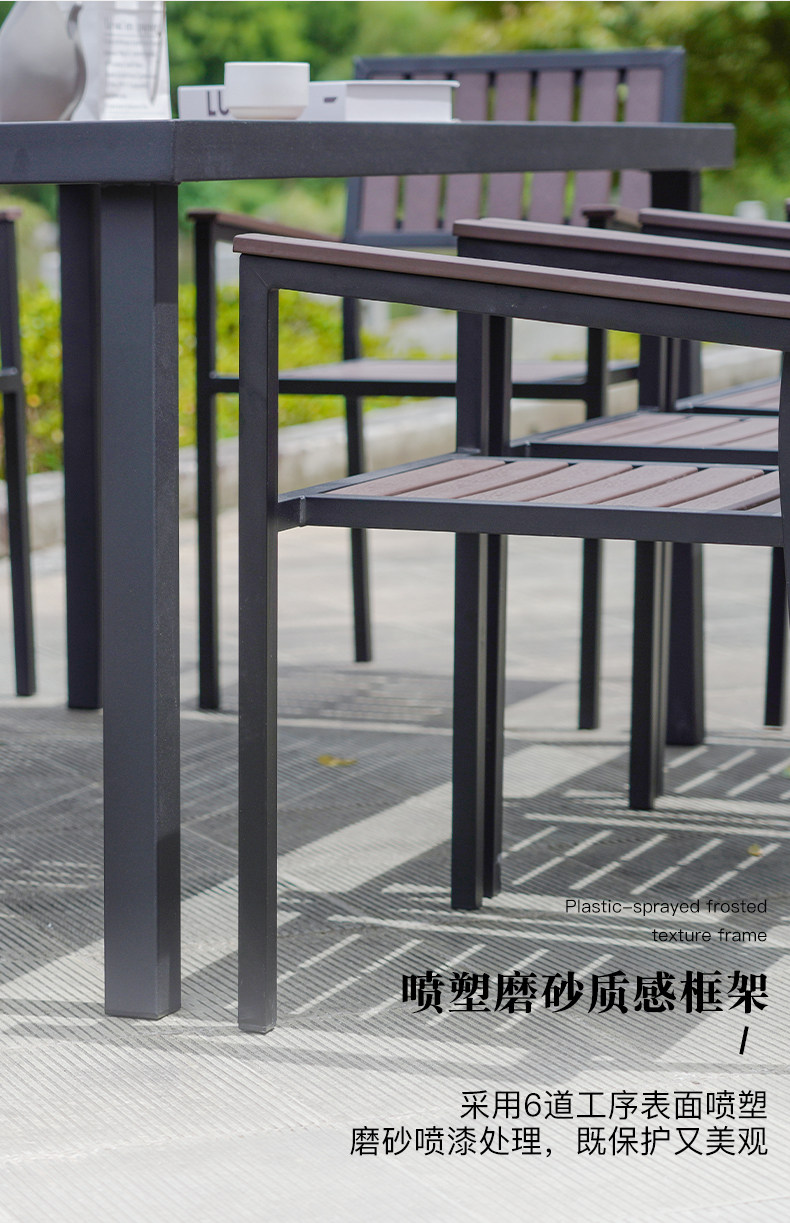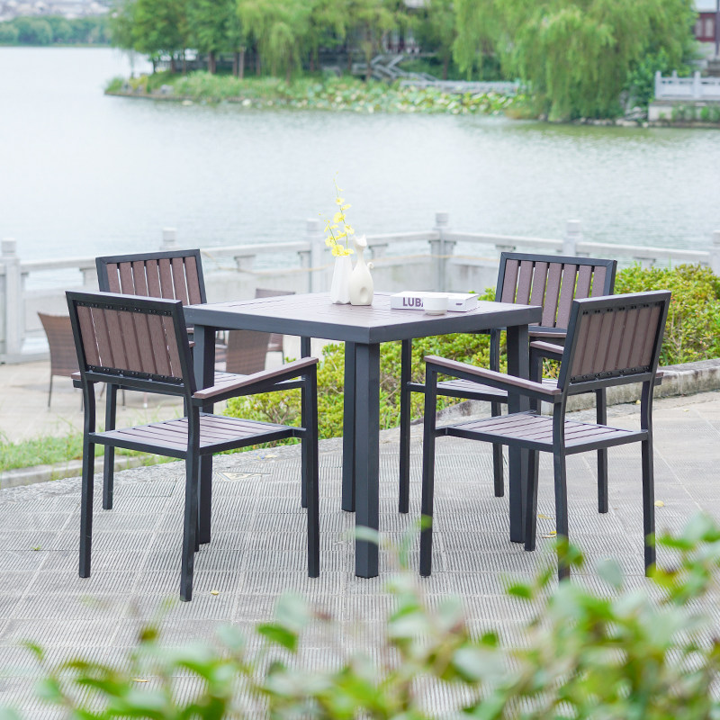 - Деревянный пластик, 4 стула + вертикальный квадратный стол с зернистостью 80 [Темный кофе]