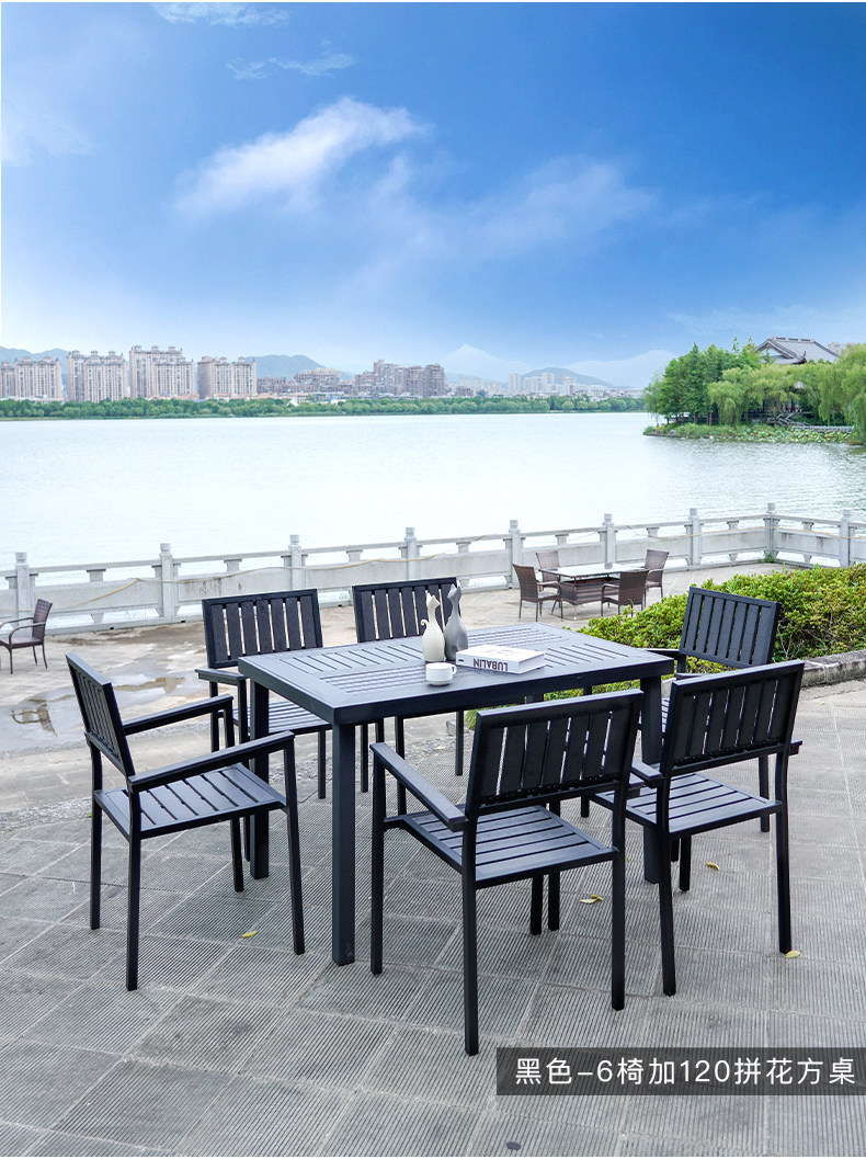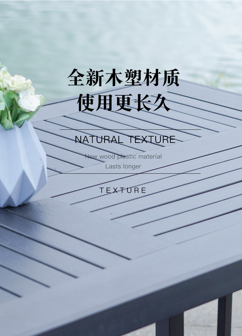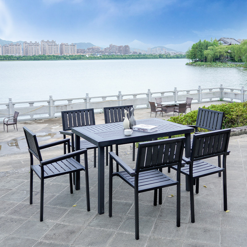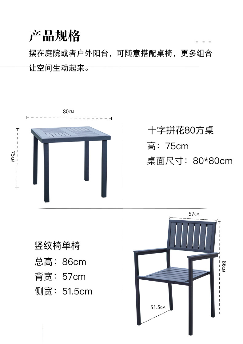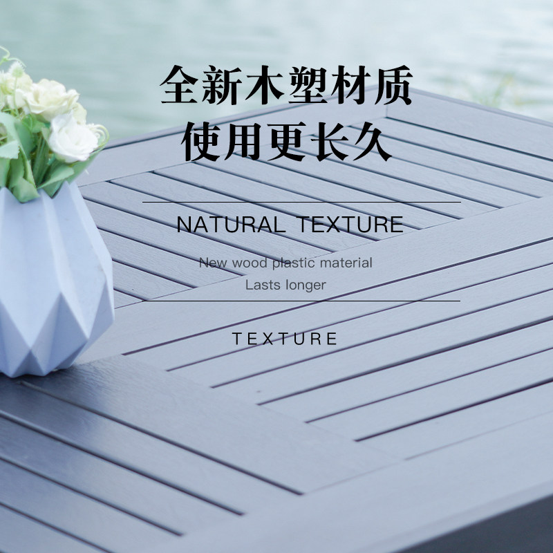 - Деревянный пластик, 4 стула + вертикальный квадратный стол с зернистостью 80 [черно-серый]