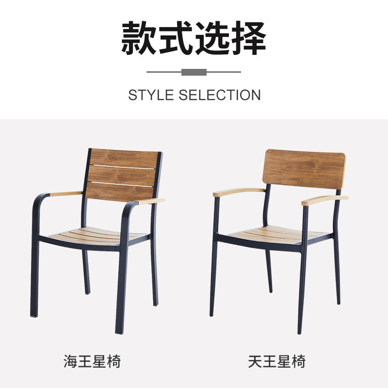 Наружные пластиковые деревянные столы и стулья Три или пять наборов консервантов двора, водонепроницаемые водонепроницаемые и солнцезащитные комбинированные досуго