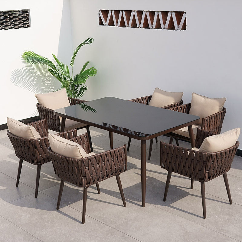 На открытом воздухе столик и стул Комбинированные балконы угловой кассовый стул Минималистский кофейный столик на открытом воздухе двойной роттан диван