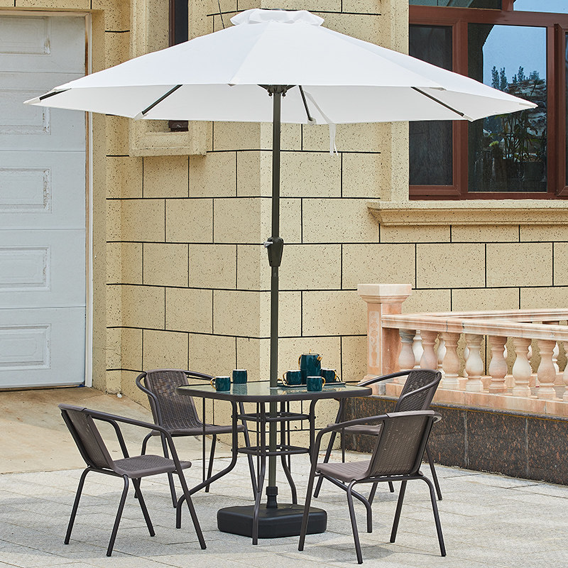 Расстановка на открытом воздухе и кресло с зонтиком с зонтичным креслом на открытом воздухе с открытым балконом.