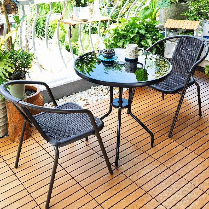 Балкон маленький стол и стул на открытом воздухе терраса Терраса повседневный кофейный столик Железный маленький круглый чайный стул Комбинированный виноградный стул Трех