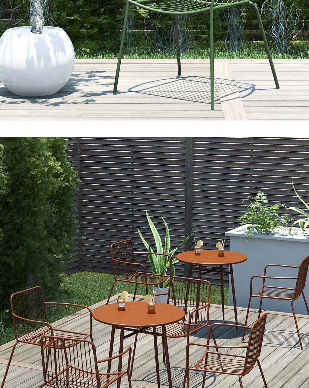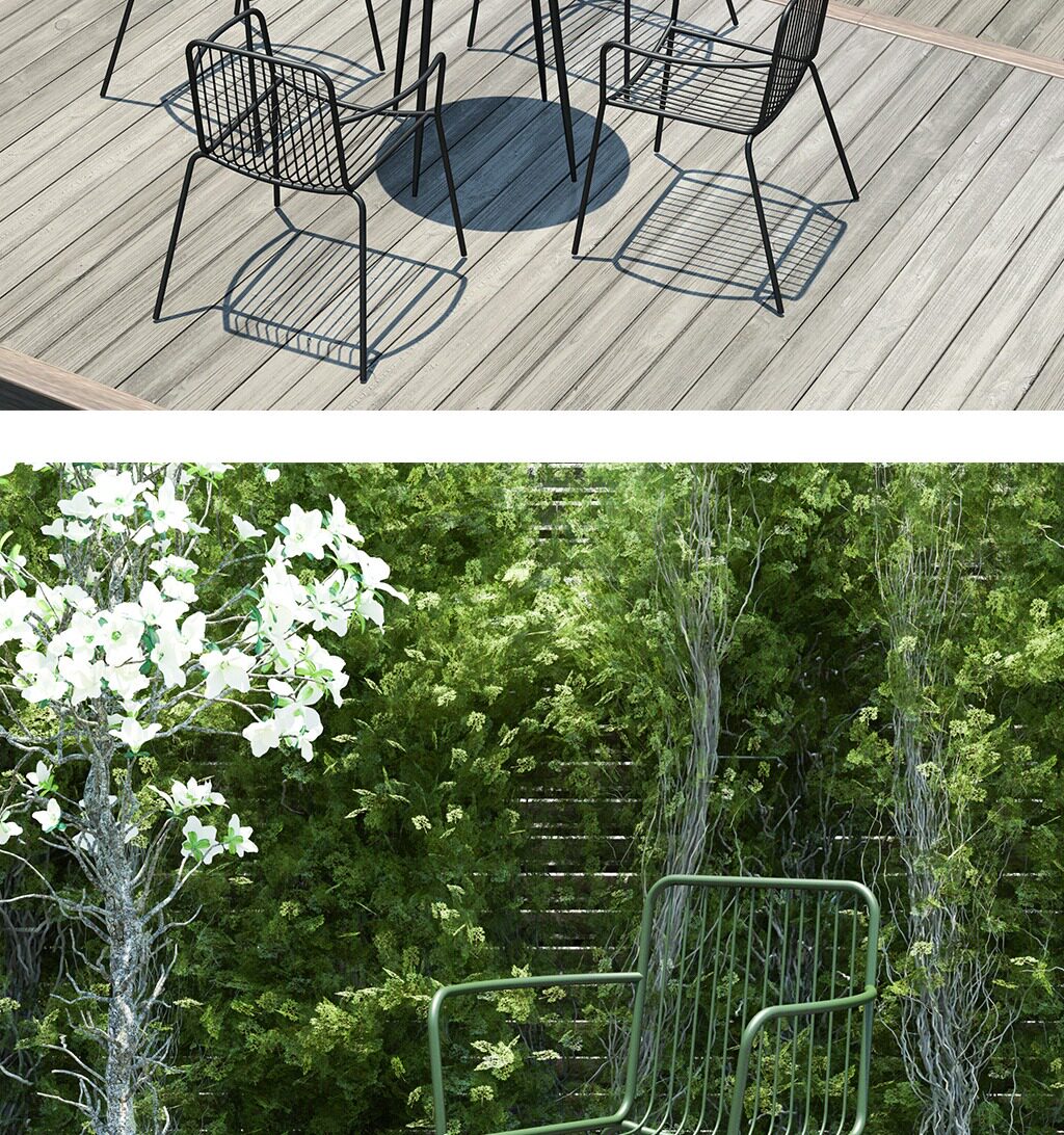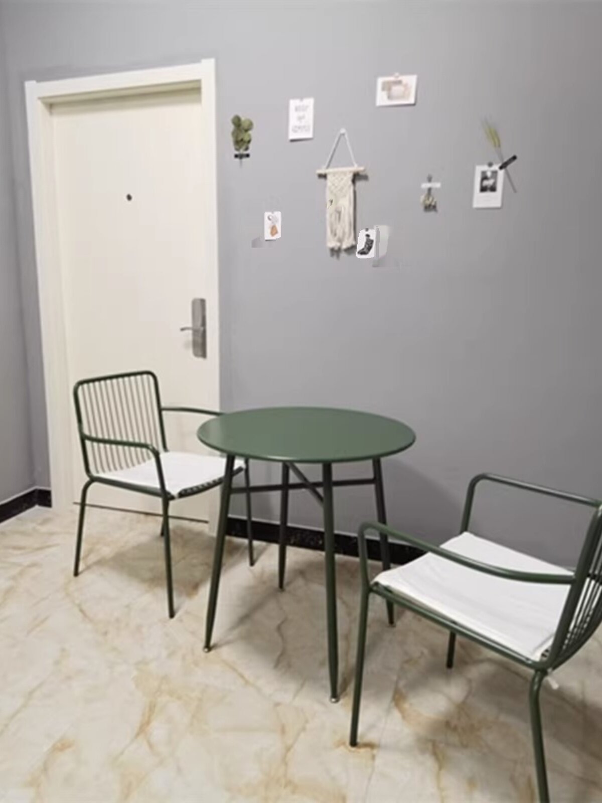- Один стол и три стула лимонно-желтого цвета.