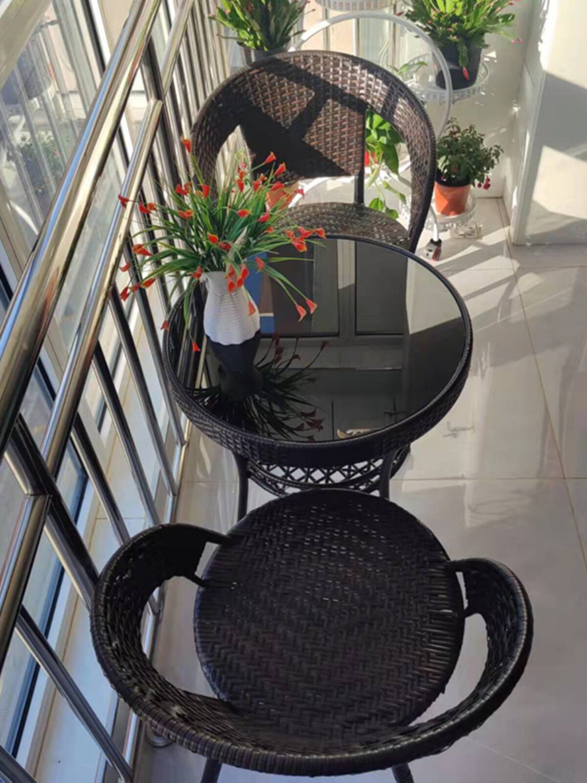 Балконный стол и стул Комбинированные виноградные лозы Трехно -части маленького чайного стола суб -коффи.
